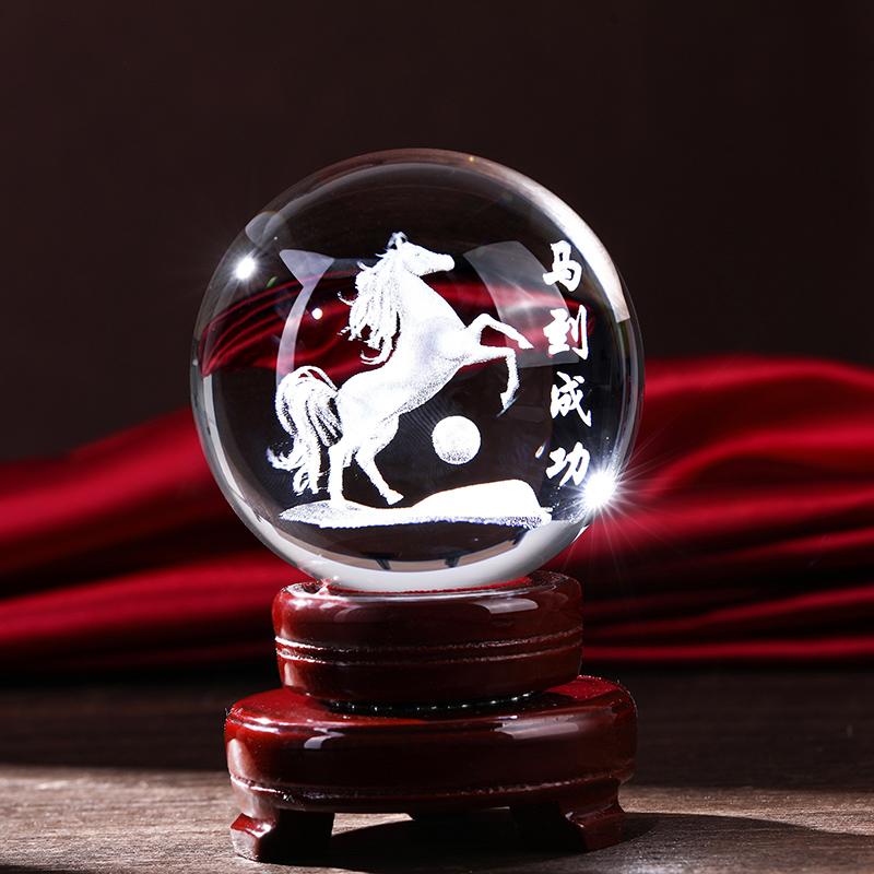 白色水晶球水晶球透明雕刻定制马玻璃球马到成功装饰客厅办公桌摆