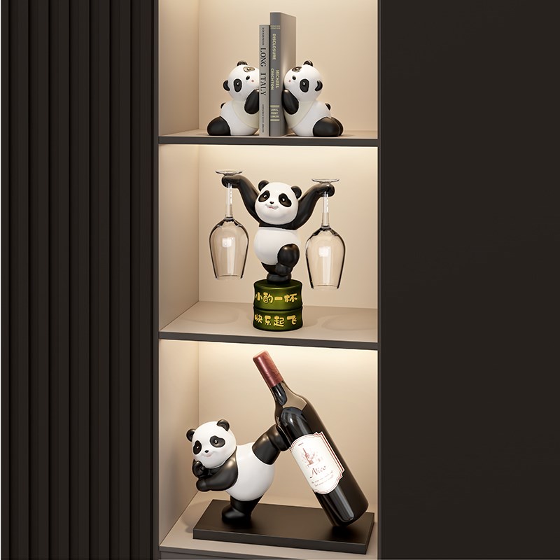 熊猫红酒架摆件轻奢高档客厅电视柜E酒柜餐边柜装饰品乔迁新居礼