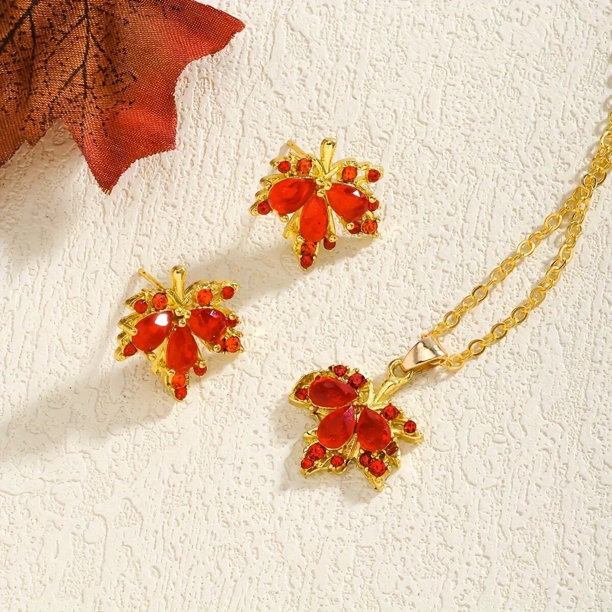 154红色枫叶项链女小众设计锆石锁骨链轻奢时尚气质项链配饰