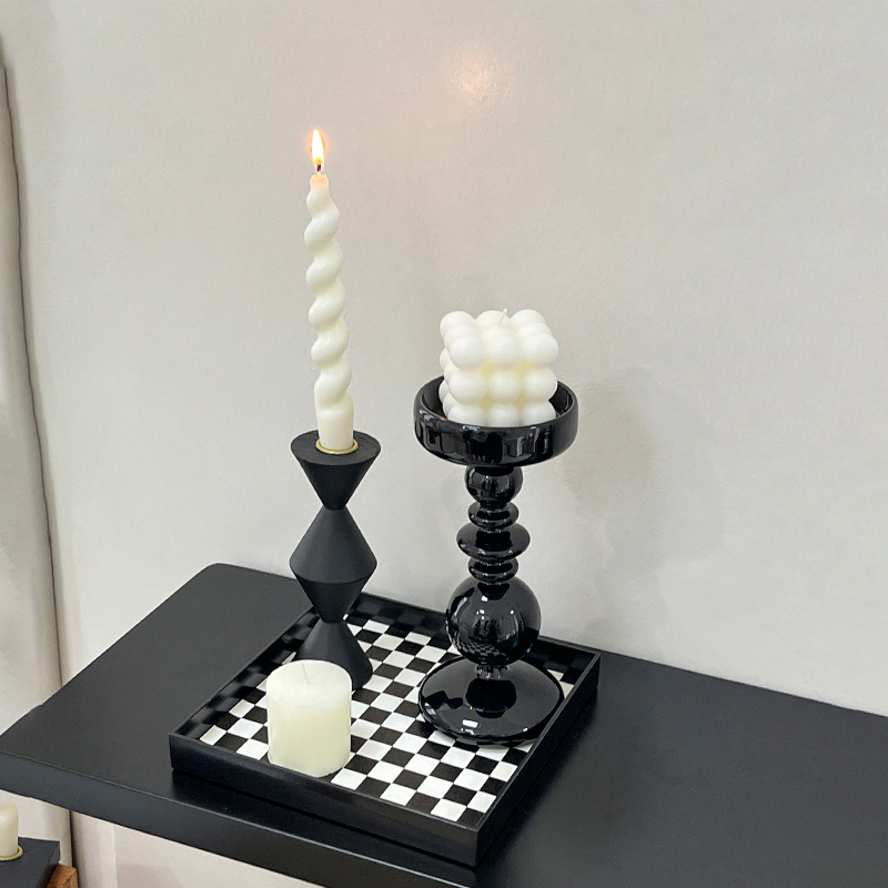 ins法式玻璃烛台摆件轻奢简约高级感实木复古黑色银色桌面装饰品