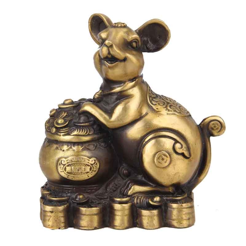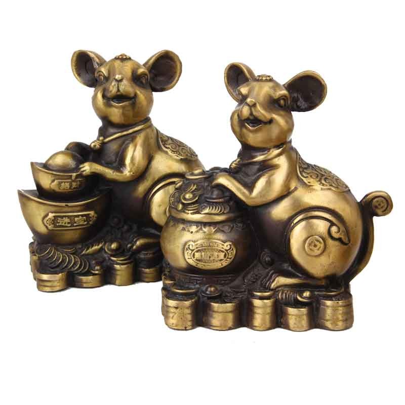 朴器 擦黑色铜老鼠摆件铜全家福鼠摆件 铜聚宝盆鼠摆件 铜元宝鼠