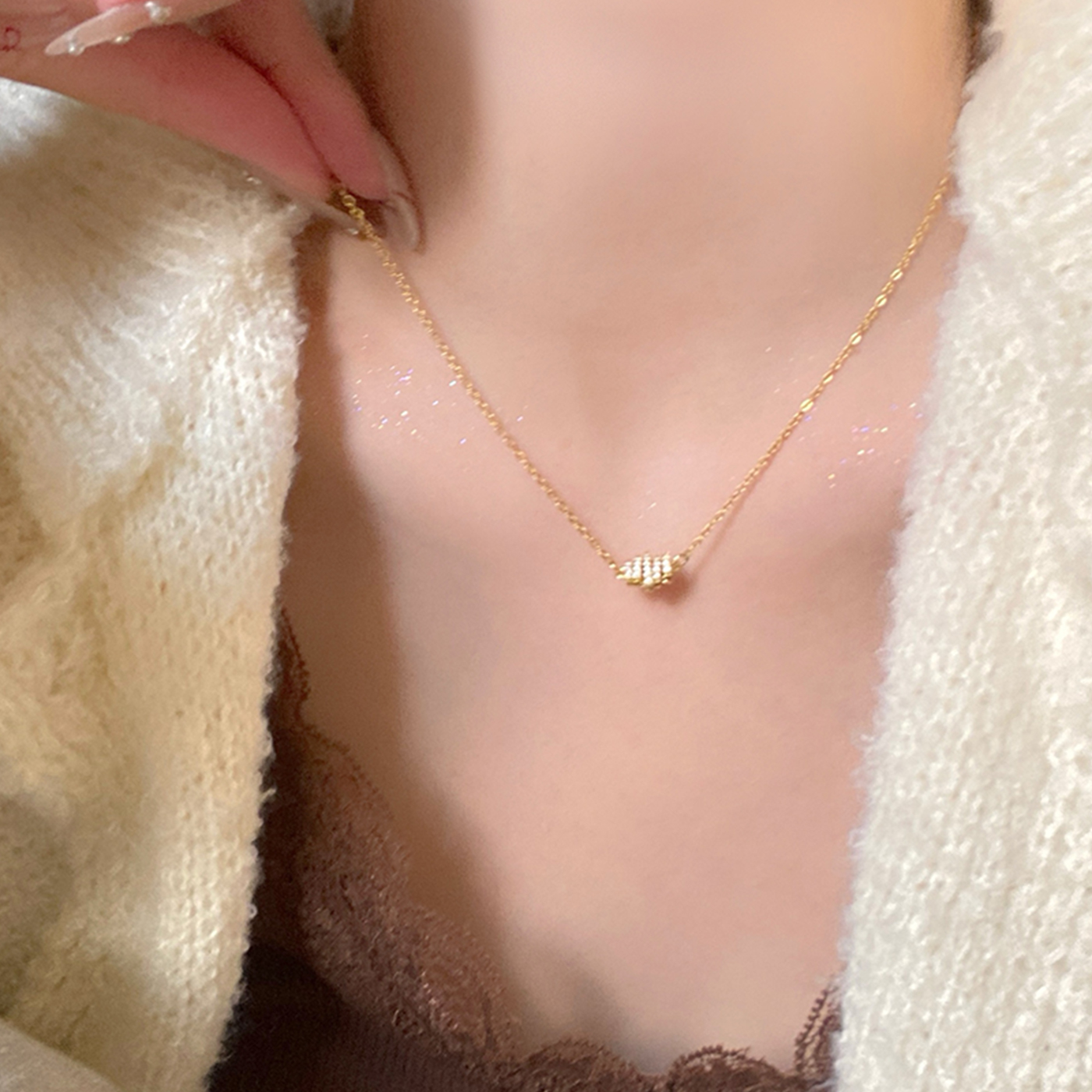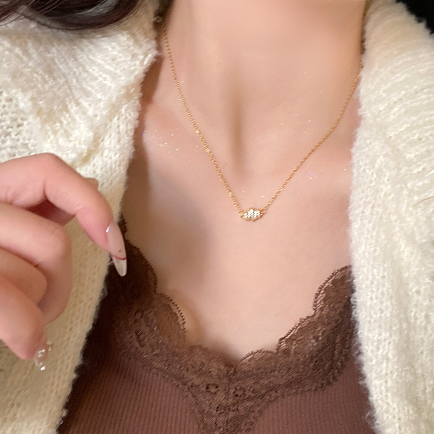 可颂牛角包镶钻项链女款金色吊坠项链高级感轻奢小众锁骨链首饰品