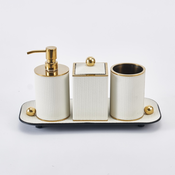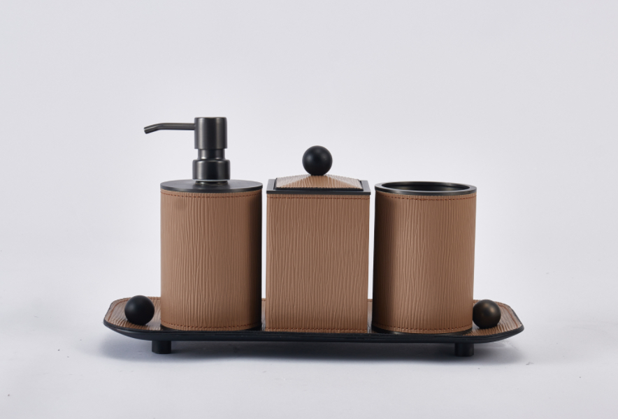 现代样板间浴室卫生间金属皮革皂液瓶口杯储物罐洗手液罐饰品摆件