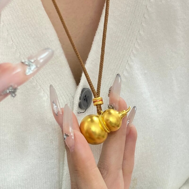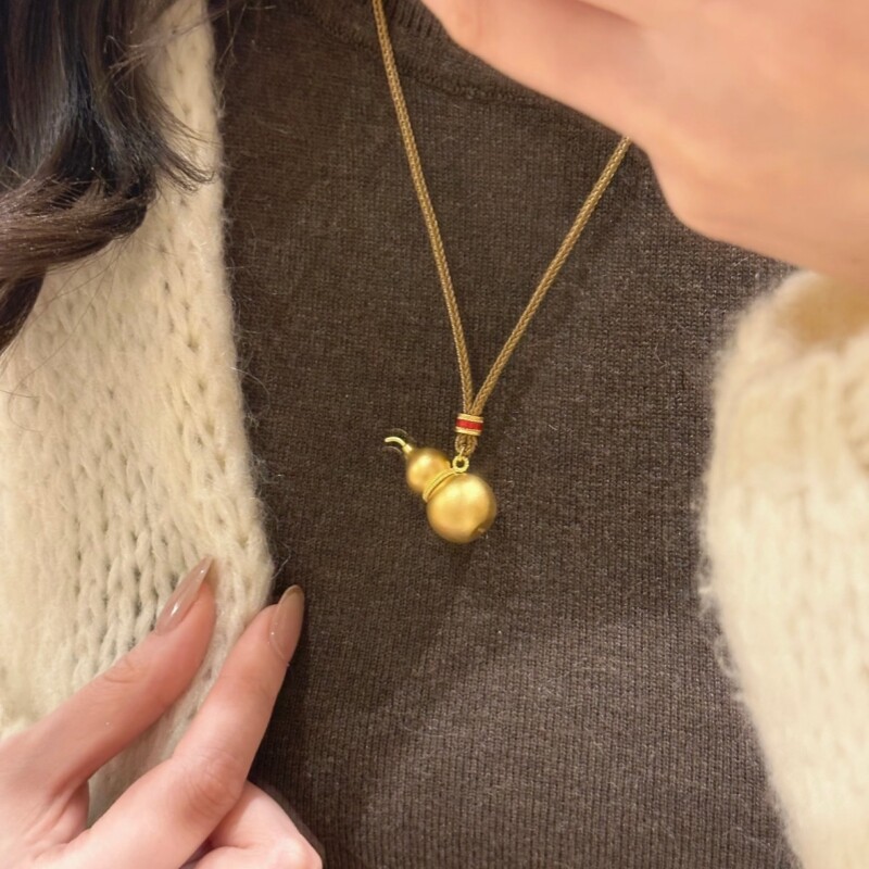 水贝黄金葫芦金包银吊坠金店同款古法黄金项链传承锁骨链男女同款