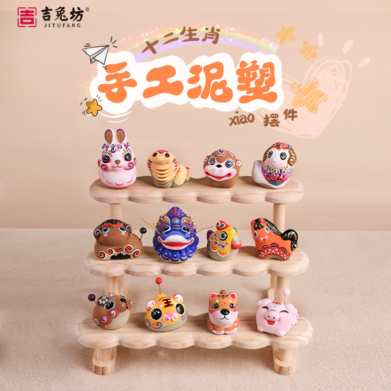 吉兔坊迷你十二生肖非遗泥彩塑摆件桌面工位可爱治愈系装饰品礼物