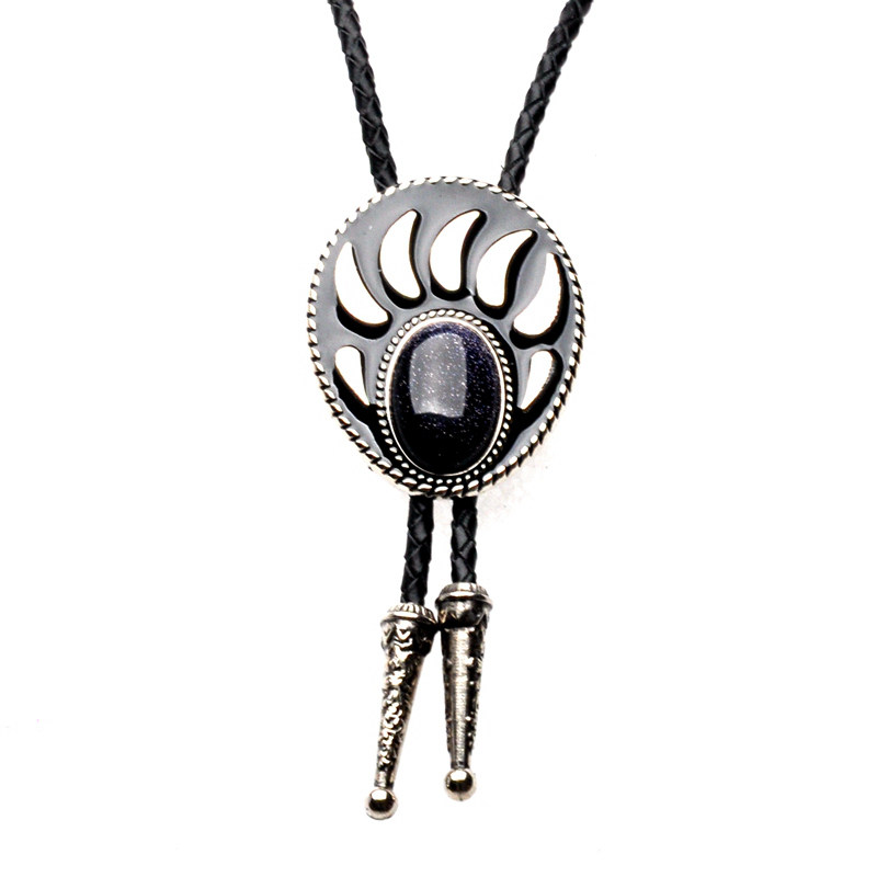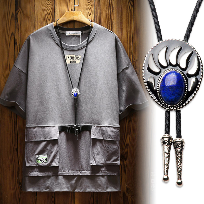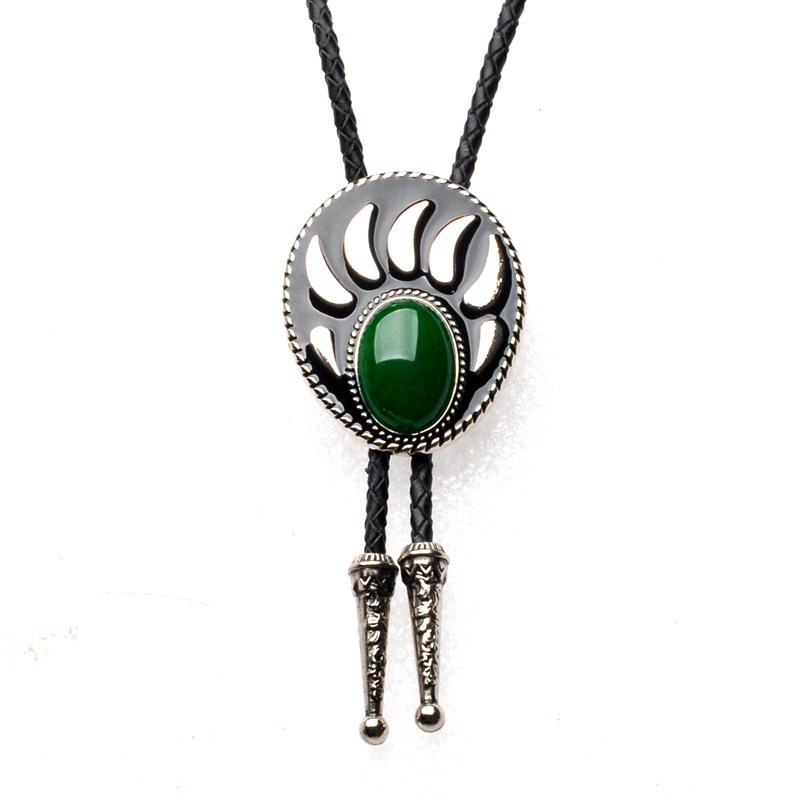 挂件镶嵌原创设计紫色绿色复古马鞭链熊掌宝石项链男雕花坠吊坠