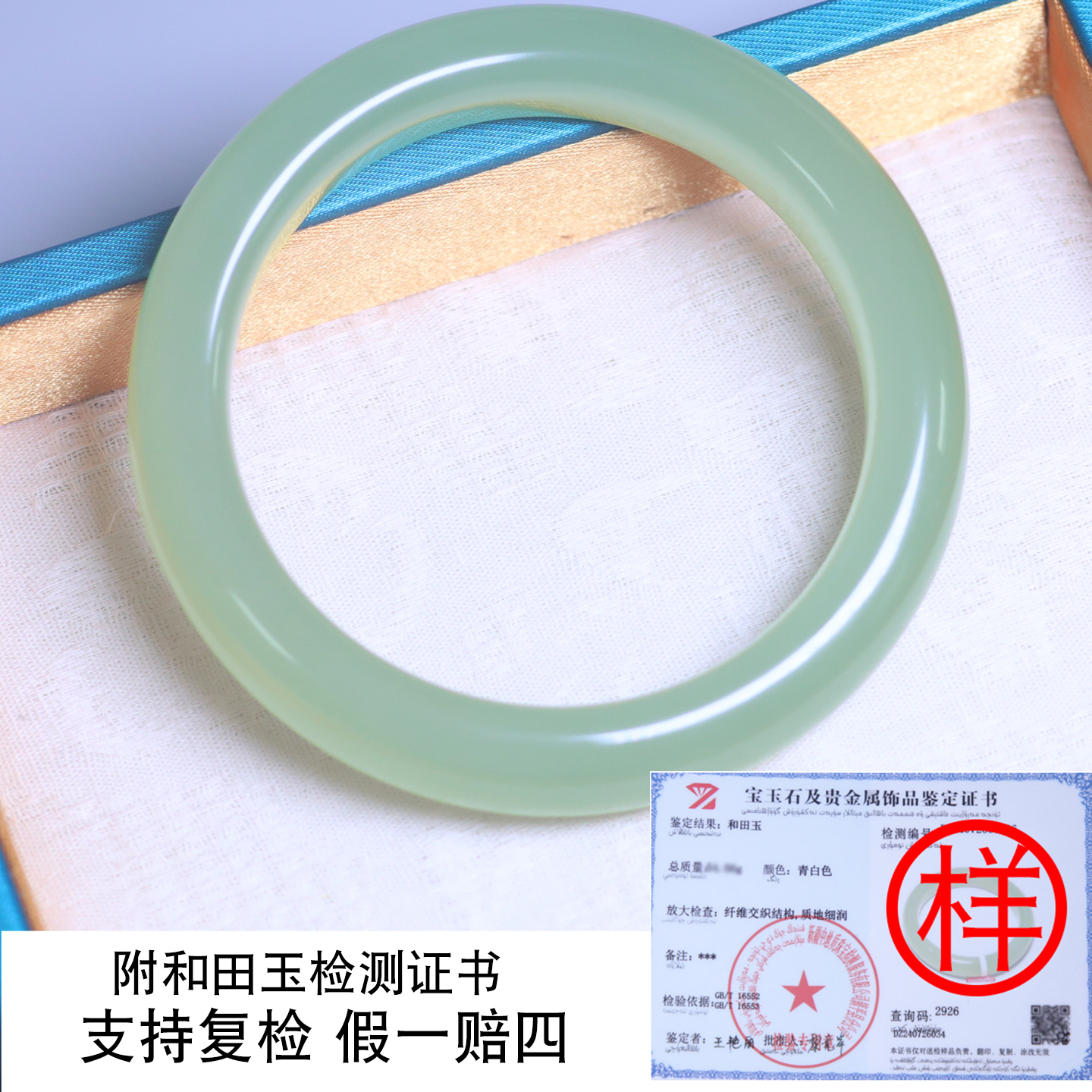珪宝55.8mm和田玉高冰晴水绿宽条手镯女款玉镯子天然带证书送女生