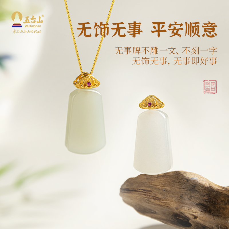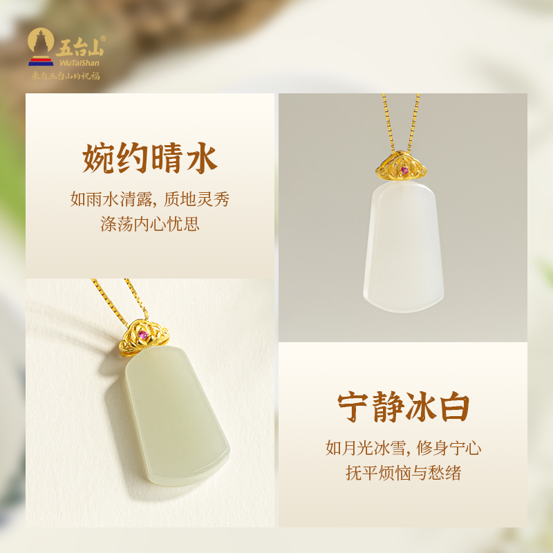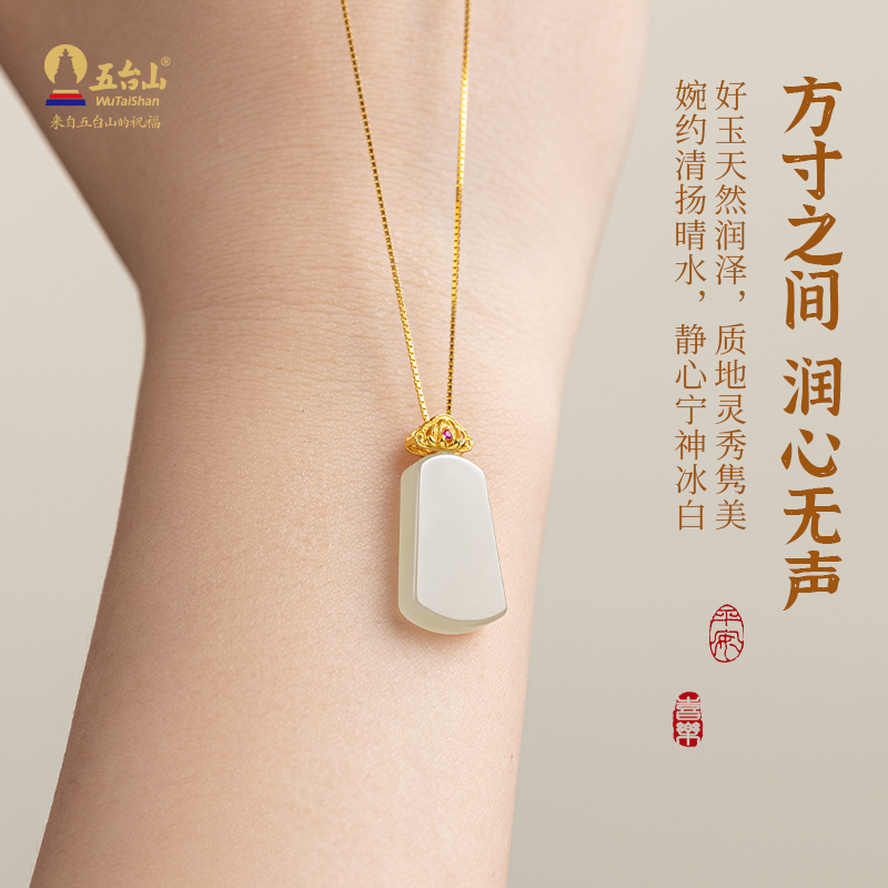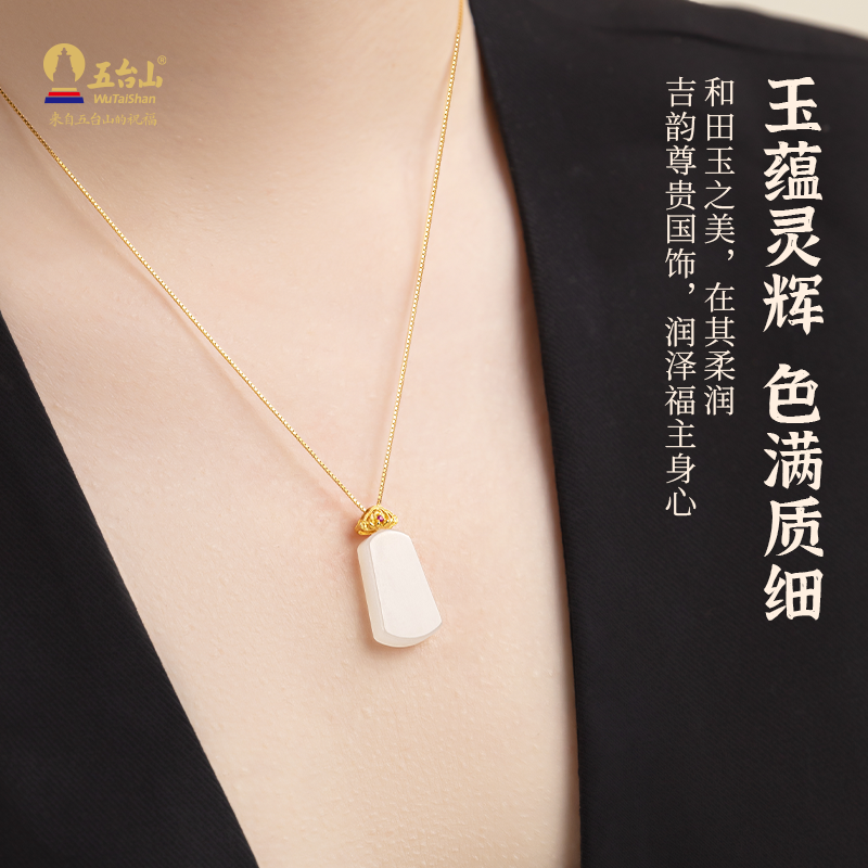 五台山天然和田玉吊坠简约晴水白玉保平安玉坠挂件生日礼物女项链