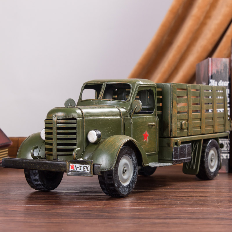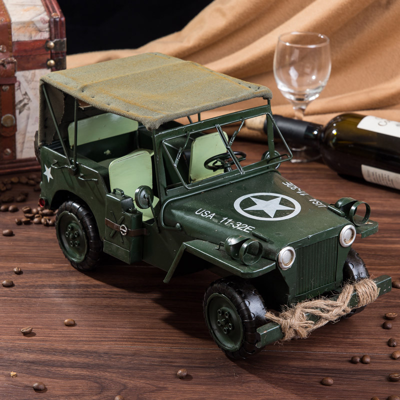 美式复古怀旧铁艺老爷车 吉普车运输车 军车仿真铁皮模型道具摆件