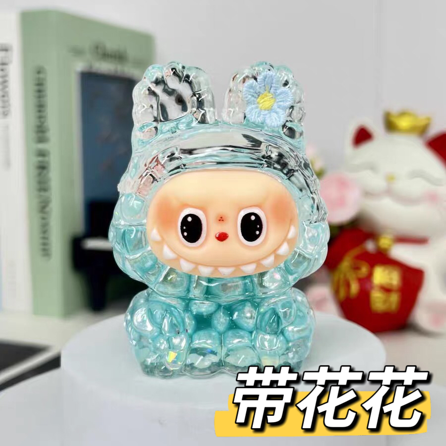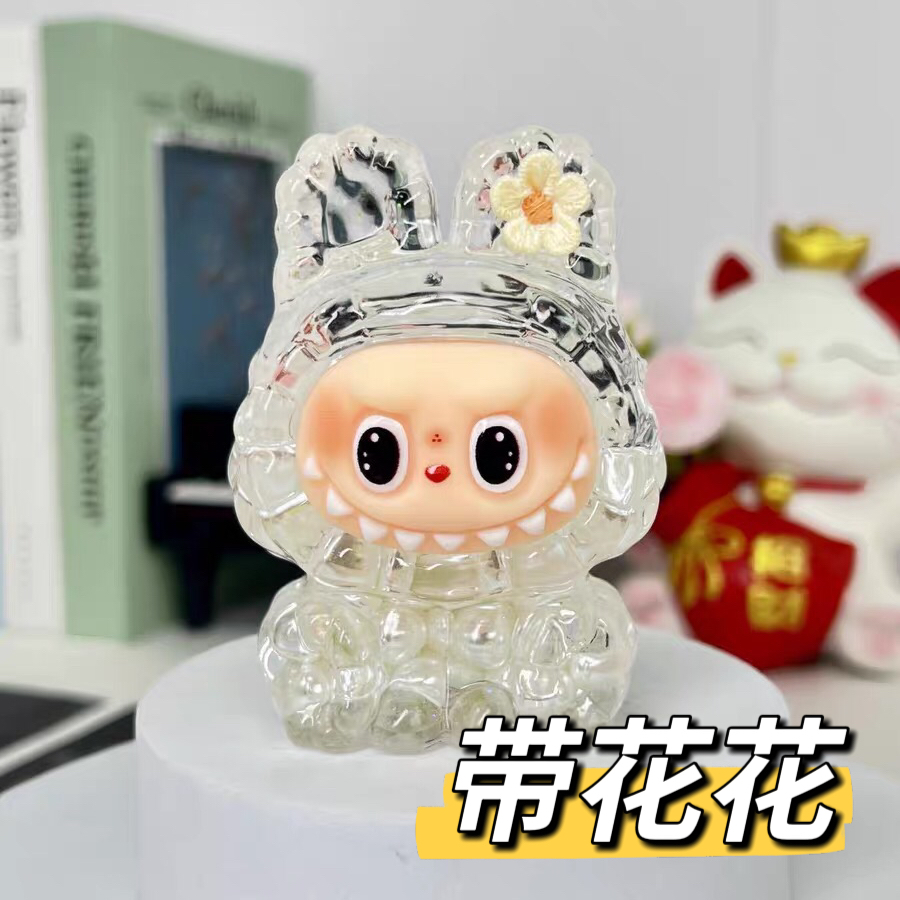 新款入油流沙拉布布珍珠款耳朵配花盲盒萌宠精品公仔手办桌面