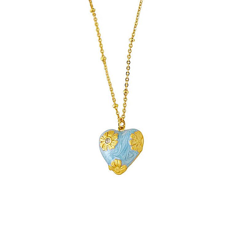 法式复古珐琅滴油花朵吊坠项链油画风高级感时尚锁骨链爱心耳环女