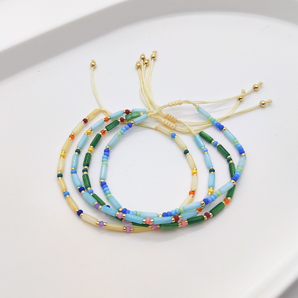 MLGM欧美原创天然贝壳圆柱形珠极细小手链女生个性编织闺蜜手串女