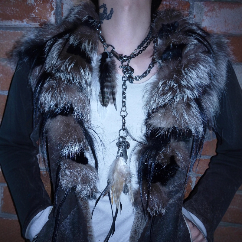 Without Me/手作视觉系羽毛骷髅十字架裤链项链配饰多元素多层次