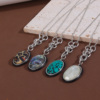 原创设计开发 欧美风饰品 椭圆松石鲍鱼贝长款时尚古银皮绳项链女