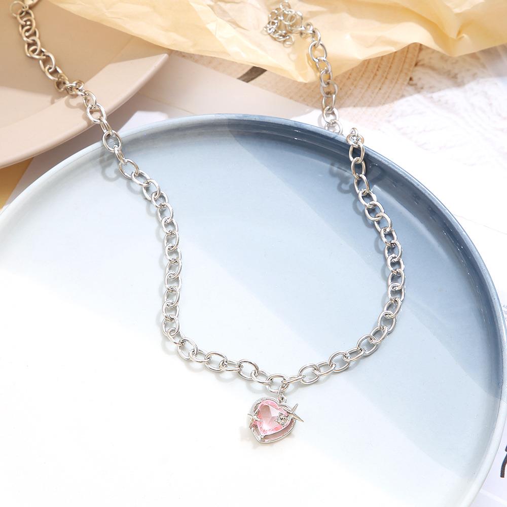 粉红色的心吊坠项炼粉红色的心吊坠锁骨炼妇女的心吊坠项炼