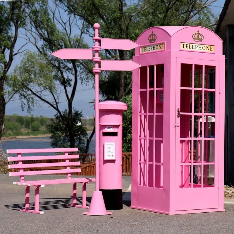 路牌长椅网红店铺装饰落地摆件覆古铁艺L电话亭邮筒摄影道具模型