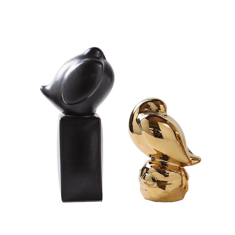 新中式黑色白色金色陶瓷小鸟动物摆件样板间书房博古架装饰品摆设
