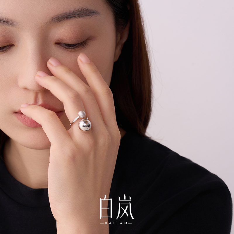 白岚双珠戒指女999银新款小众设计轻奢原创开口戒圈QL3473-BK