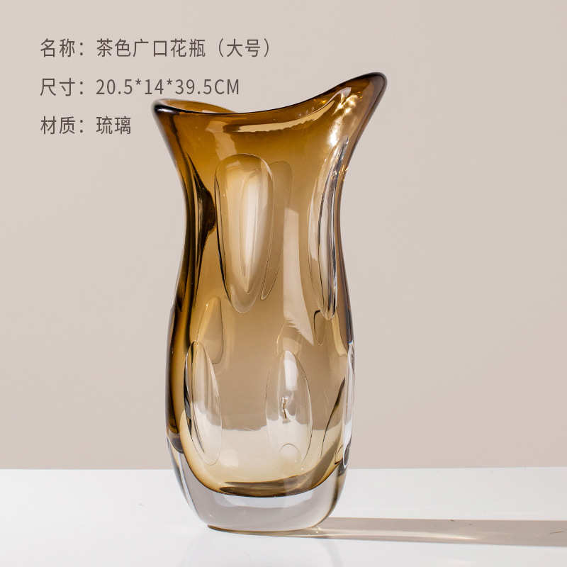 器软艺术玄关摆件花瓶不规则样板琉璃餐桌琥珀色轻装奢现代花房间