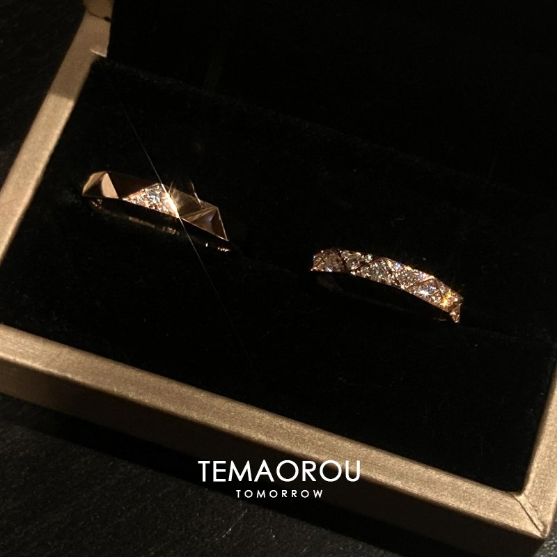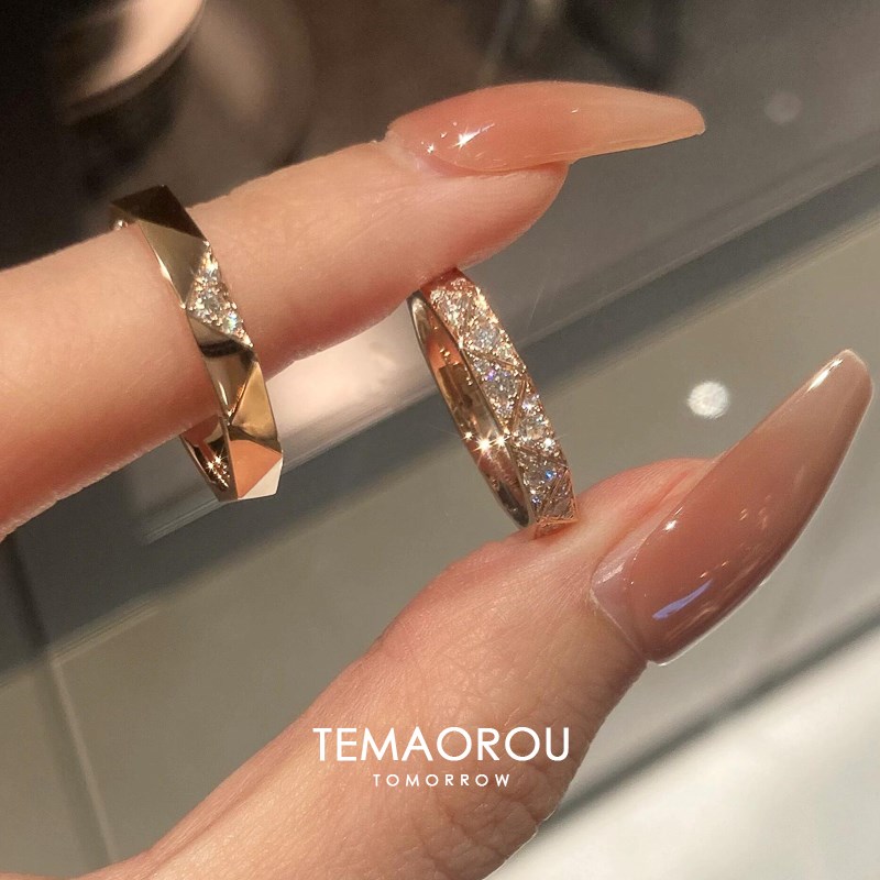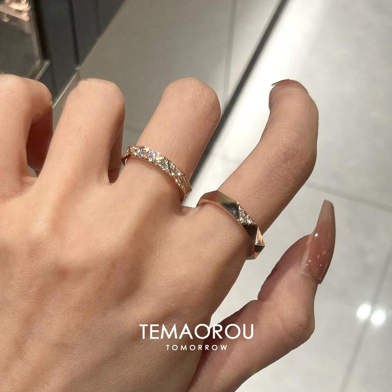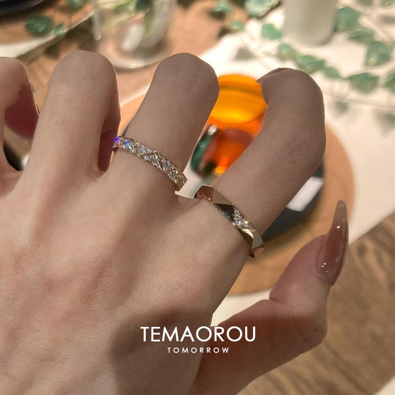 两件套!爆闪满钻金色素圈光面戒指女款轻奢M高级感叠戴食指戒对戒