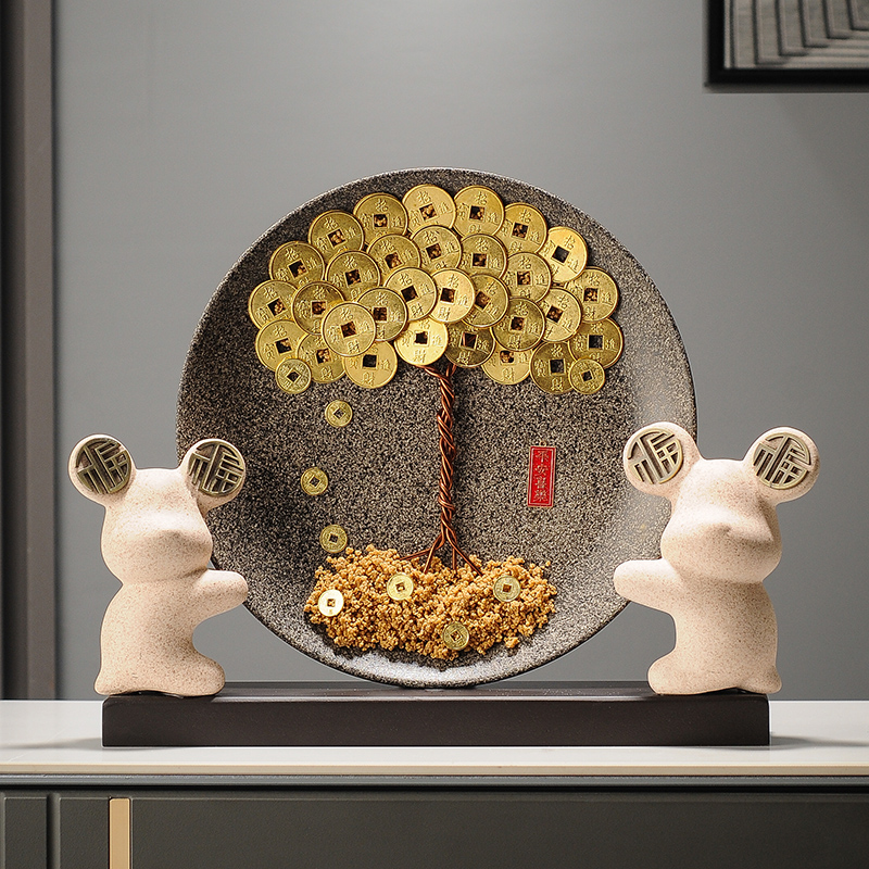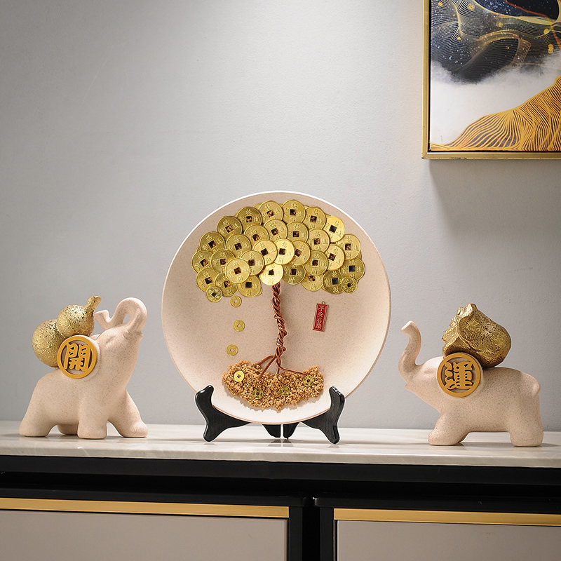 客厅酒柜摇钱树发财摆件s电视柜玄关盘子装饰品招财鹿前台开业礼