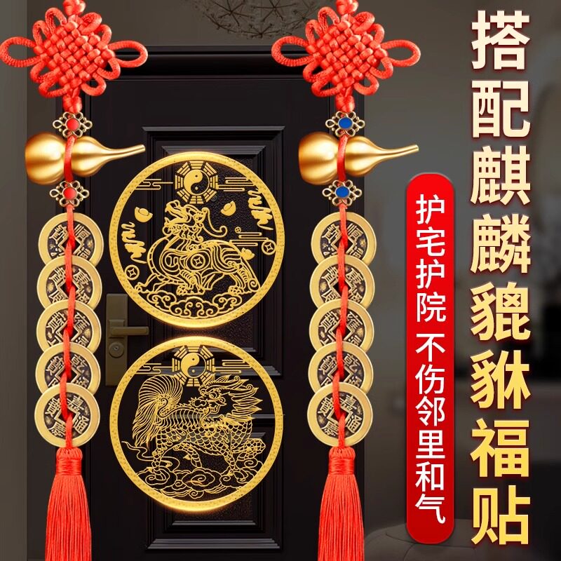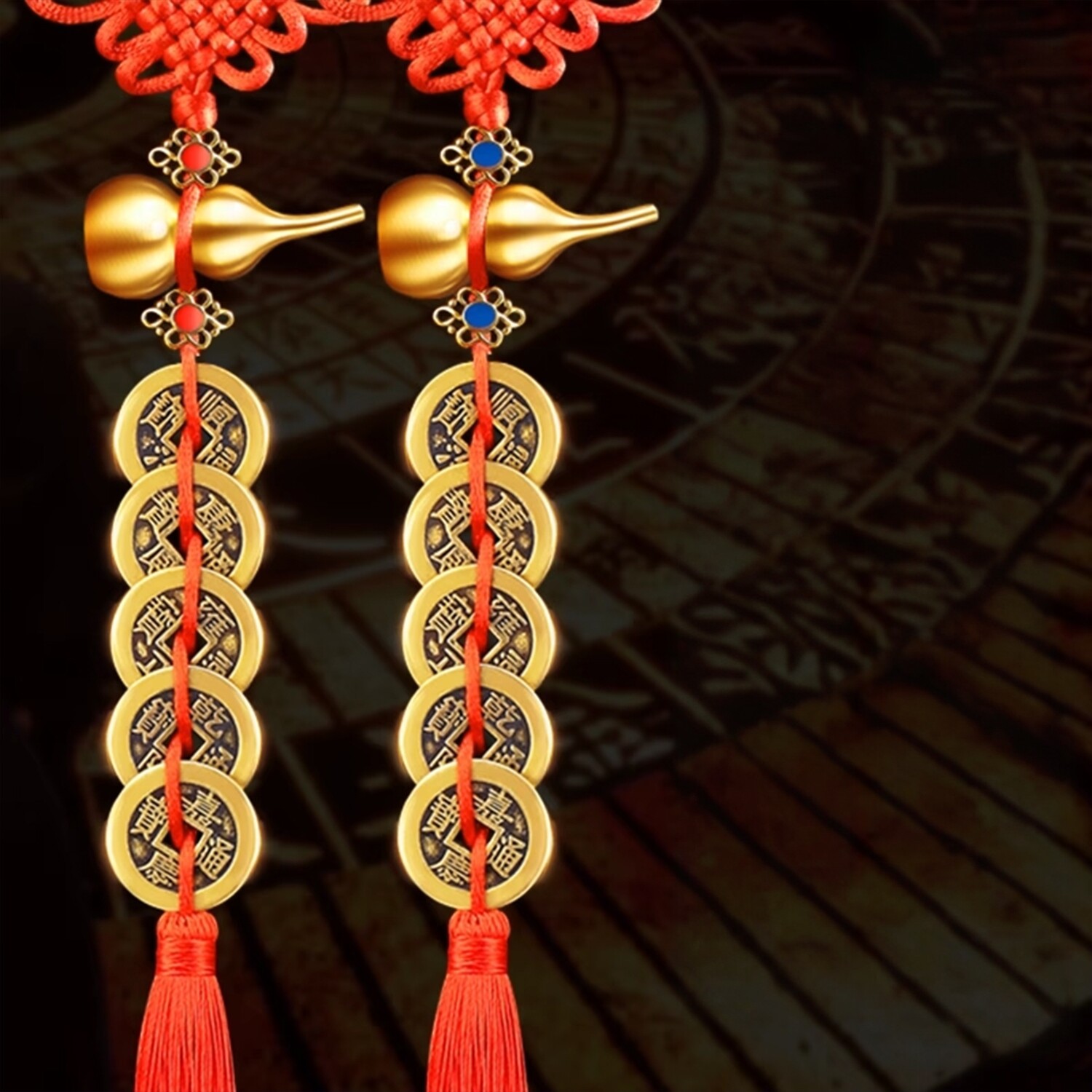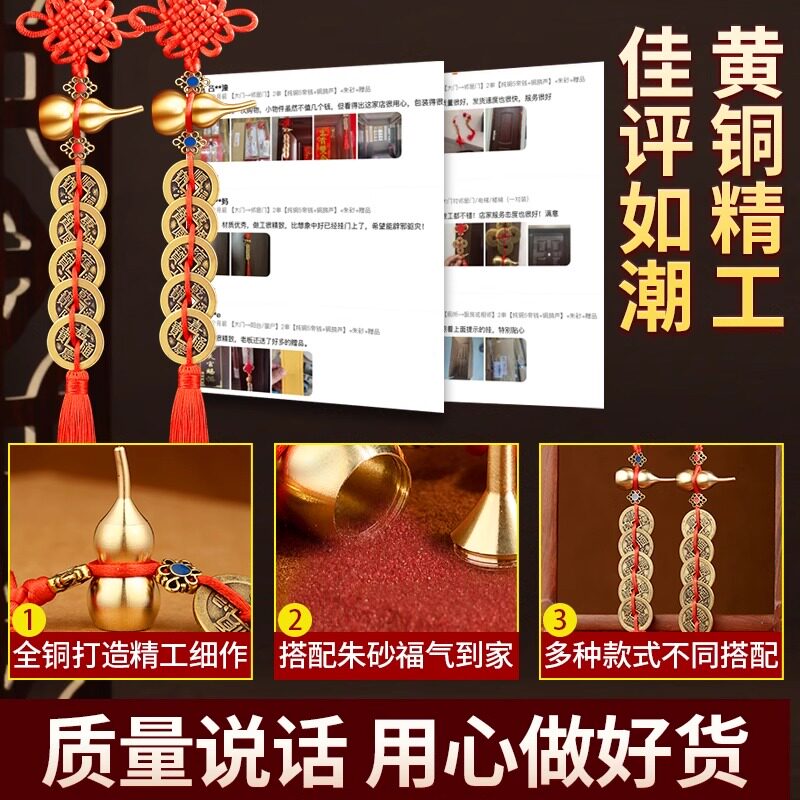 五帝钱葫芦挂件门对门朱砂入户大门口卧室吉祥中国结钱串挂门物件
