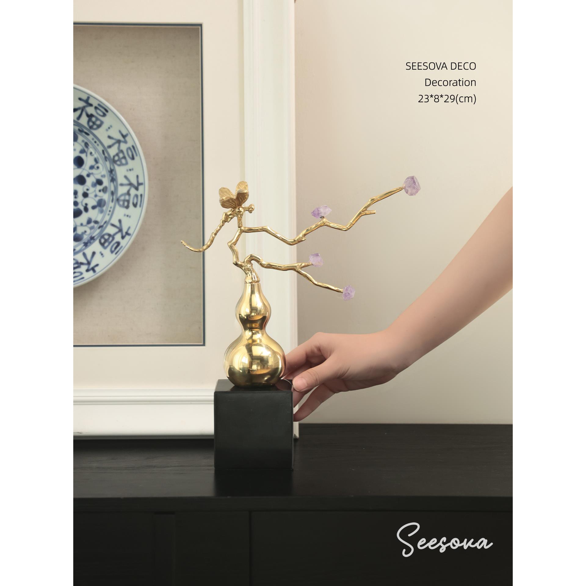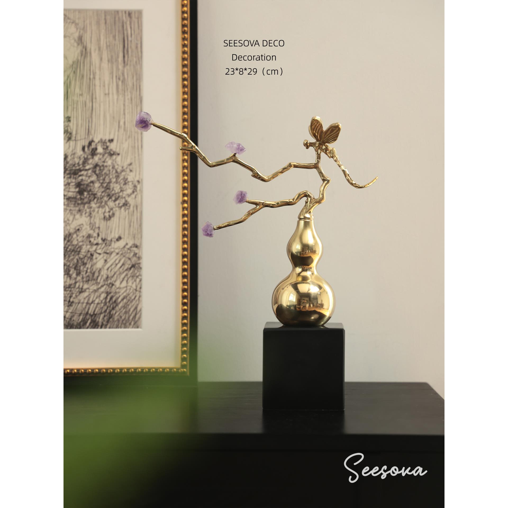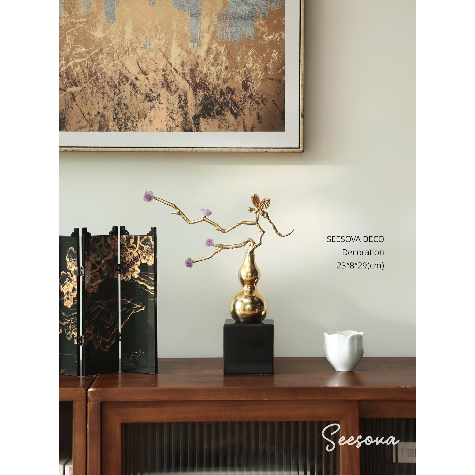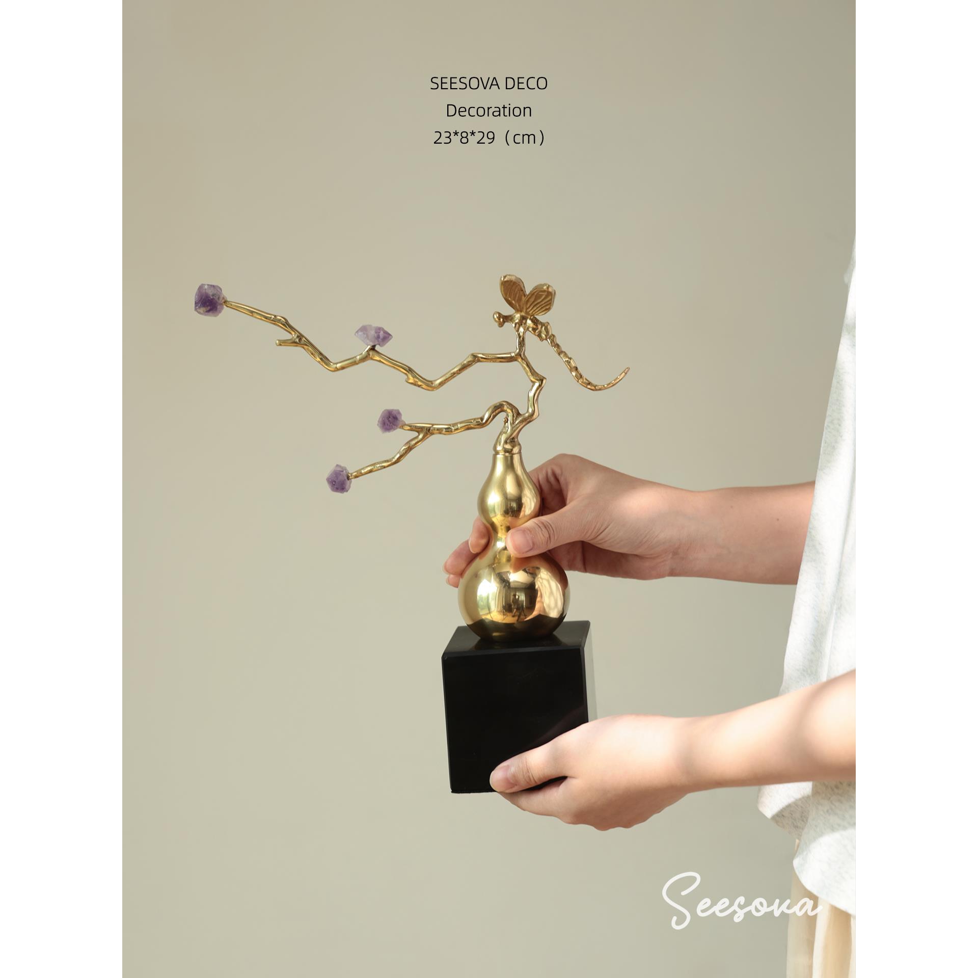 曦索华新中式黄铜葫芦风水摆件家居客厅玄关桌面上招财镇宅小摆设