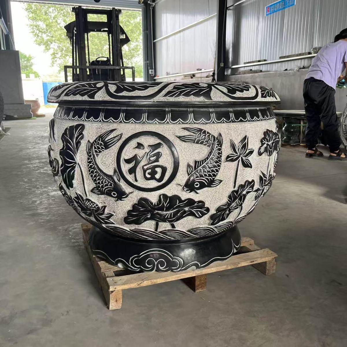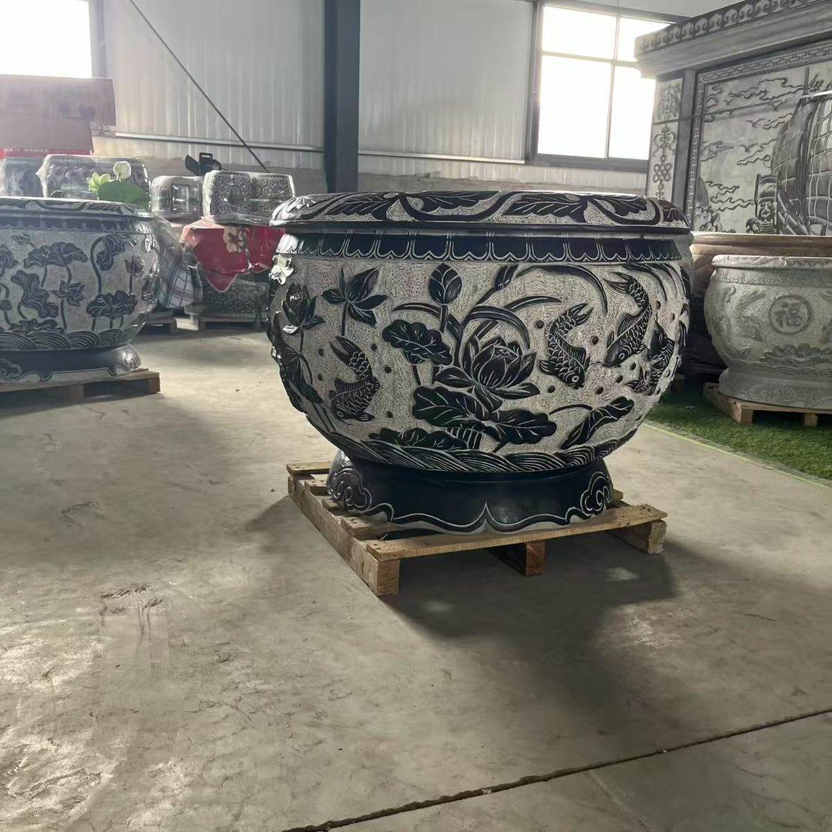 青石荷花养鱼水缸园林仿古中式养鱼养花石缸青石雕刻圆形鱼缸