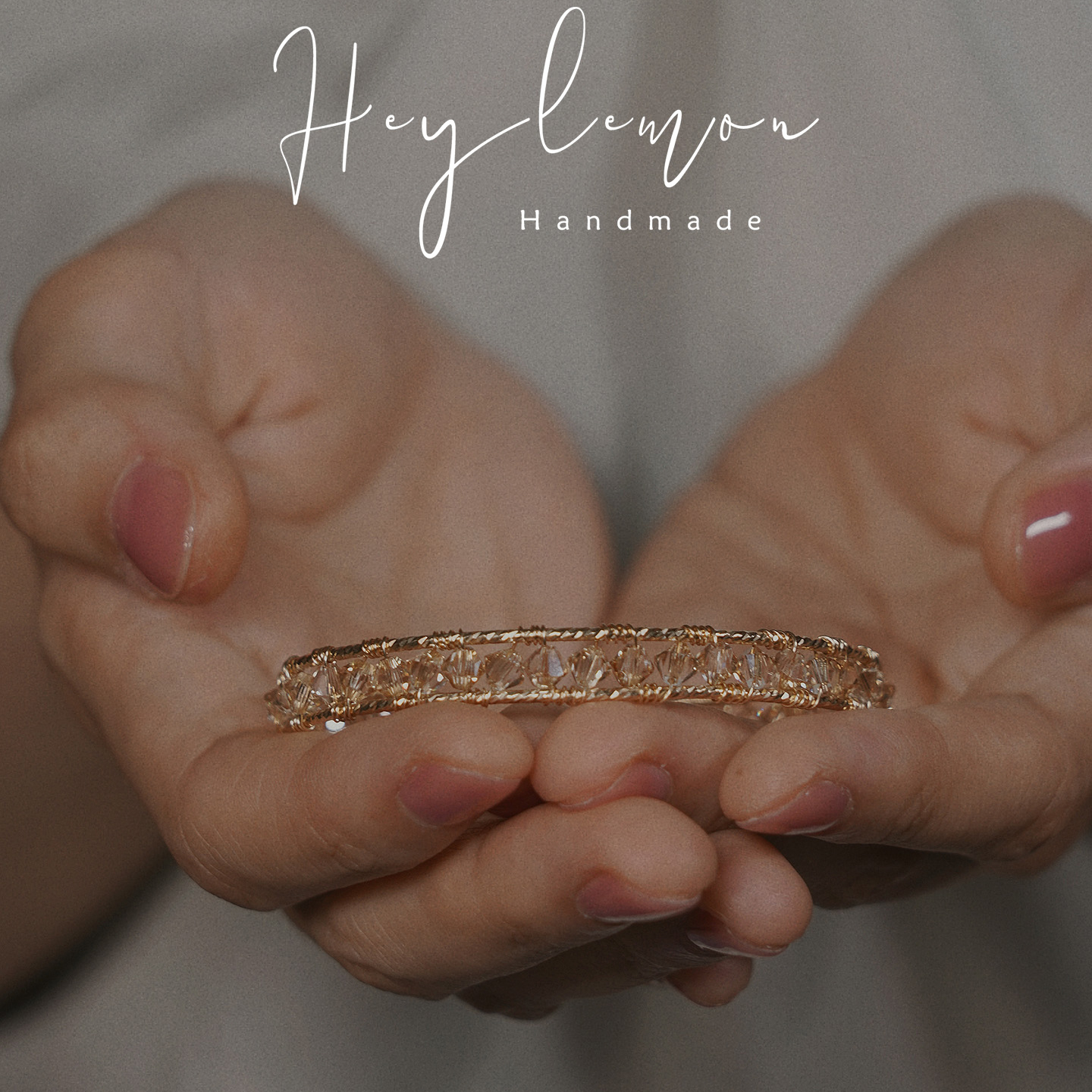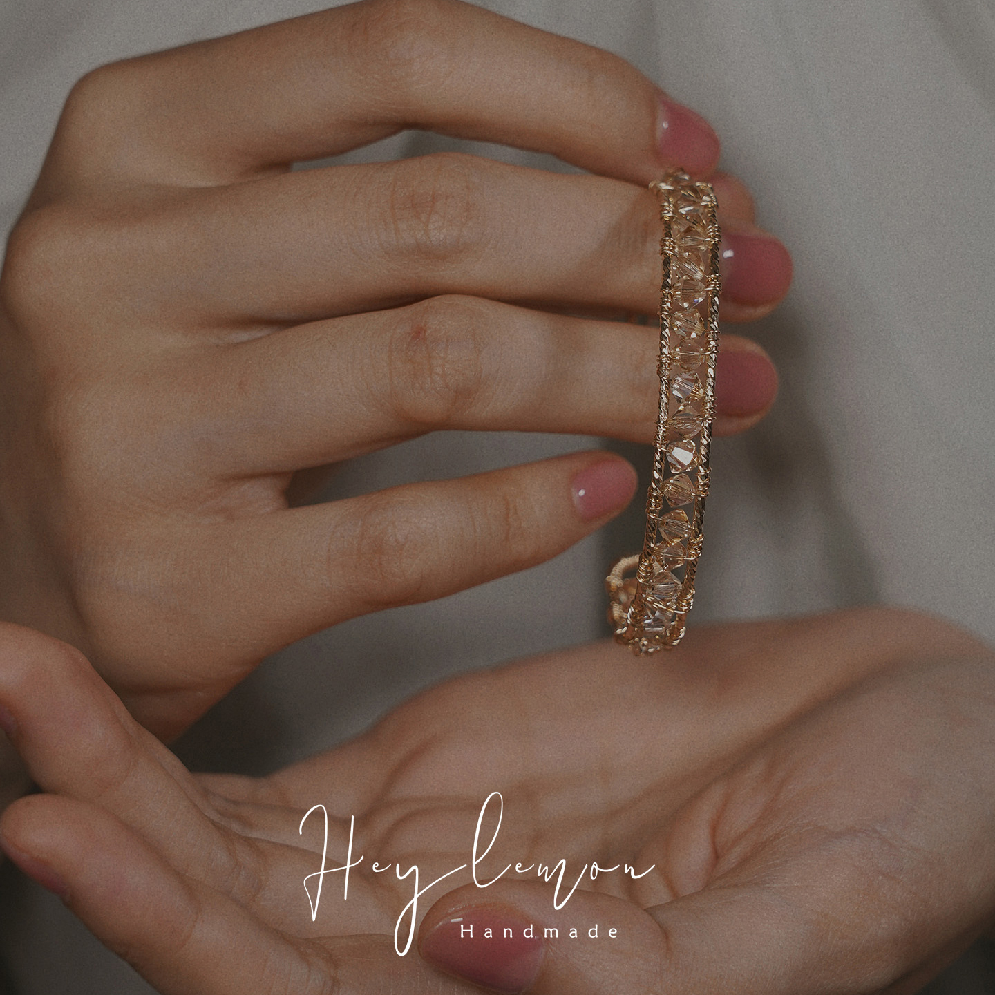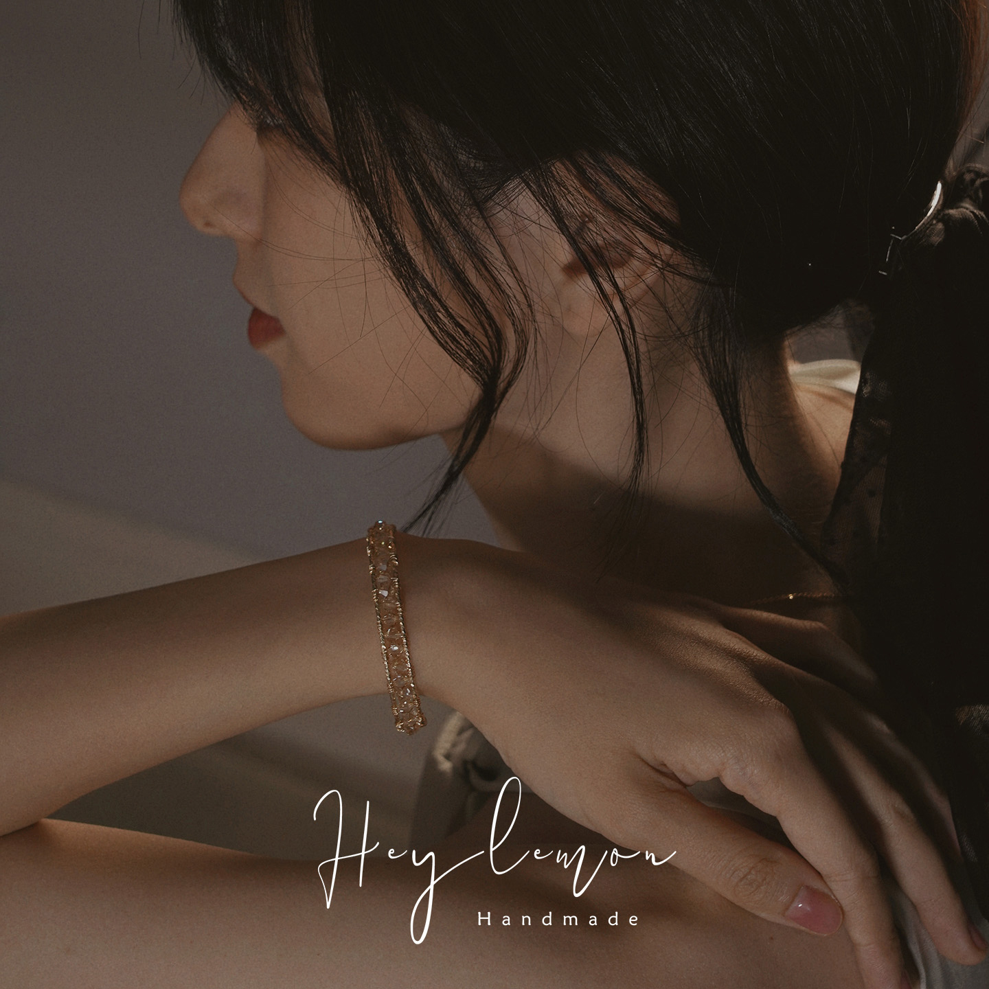 LEMON 小众轻奢气质进口施家水晶纯手工制作绕线14K包金手镯手链