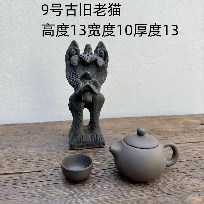 古旧老瓦猫c艺术空间造型摆件侘寂风老旧装饰古艺术摆件古旧装饰