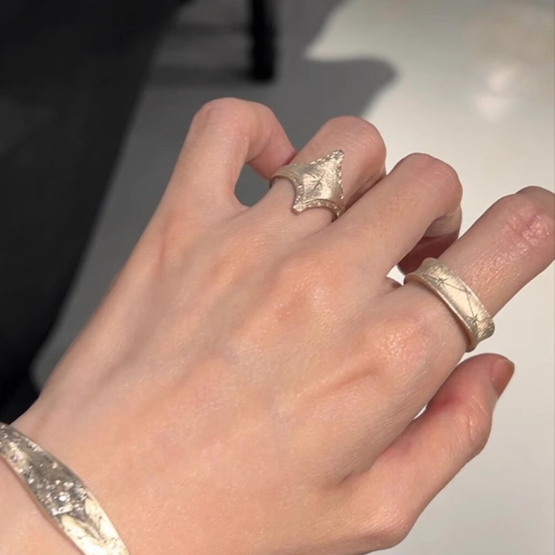 银色拉丝八芒星戒指女轻奢高级感复古旧做食指戒小众独特气质尾戒