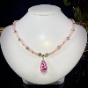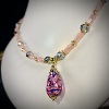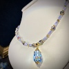 中古饰品原创设计进口银箔水滴琉璃粉色蓝色颈项项链有延长链