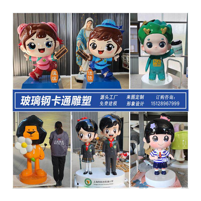玻璃钢卡通动漫人物小型雕塑定制企业形象公仔桌面摆件生产厂家