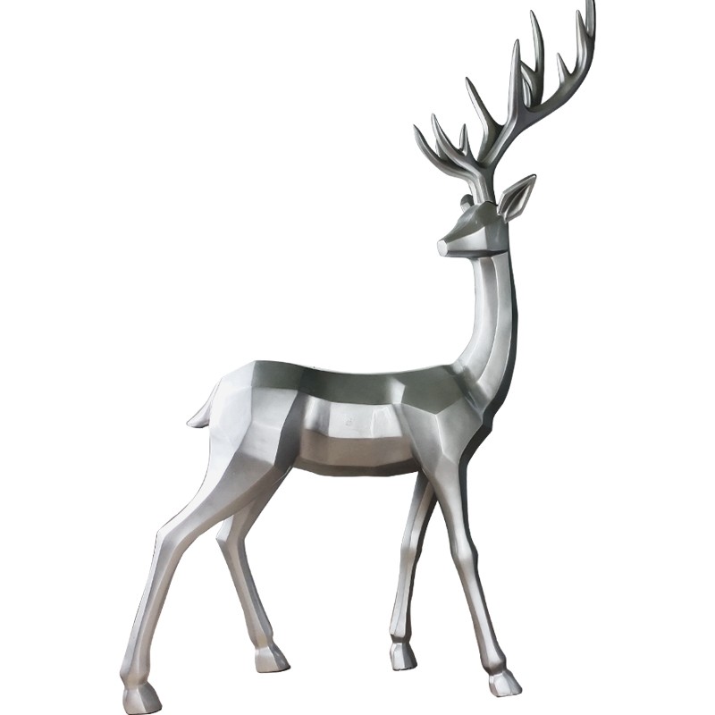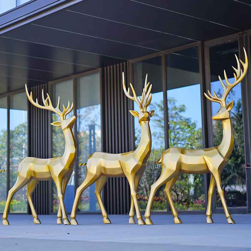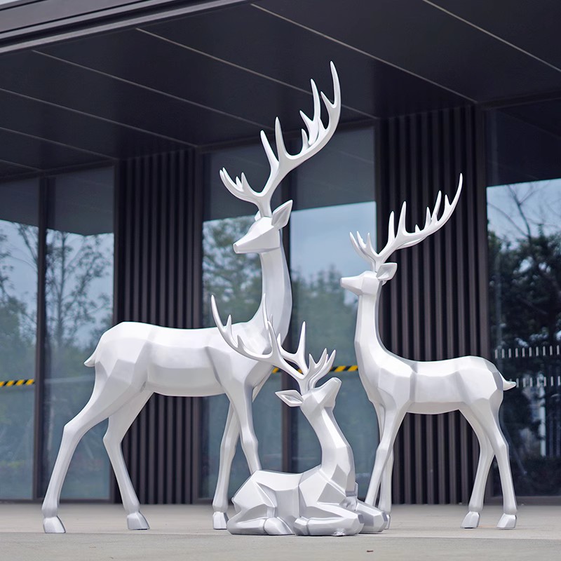 户外几何块面鹿雕塑花园林景观造景抽象梅花鹿草地玻璃钢装饰摆件