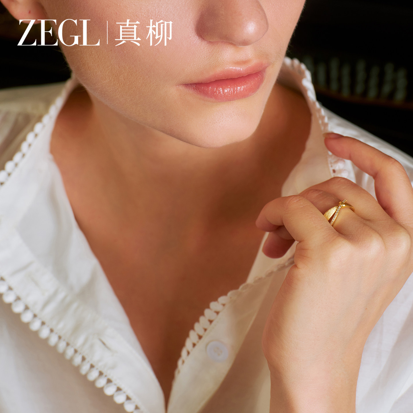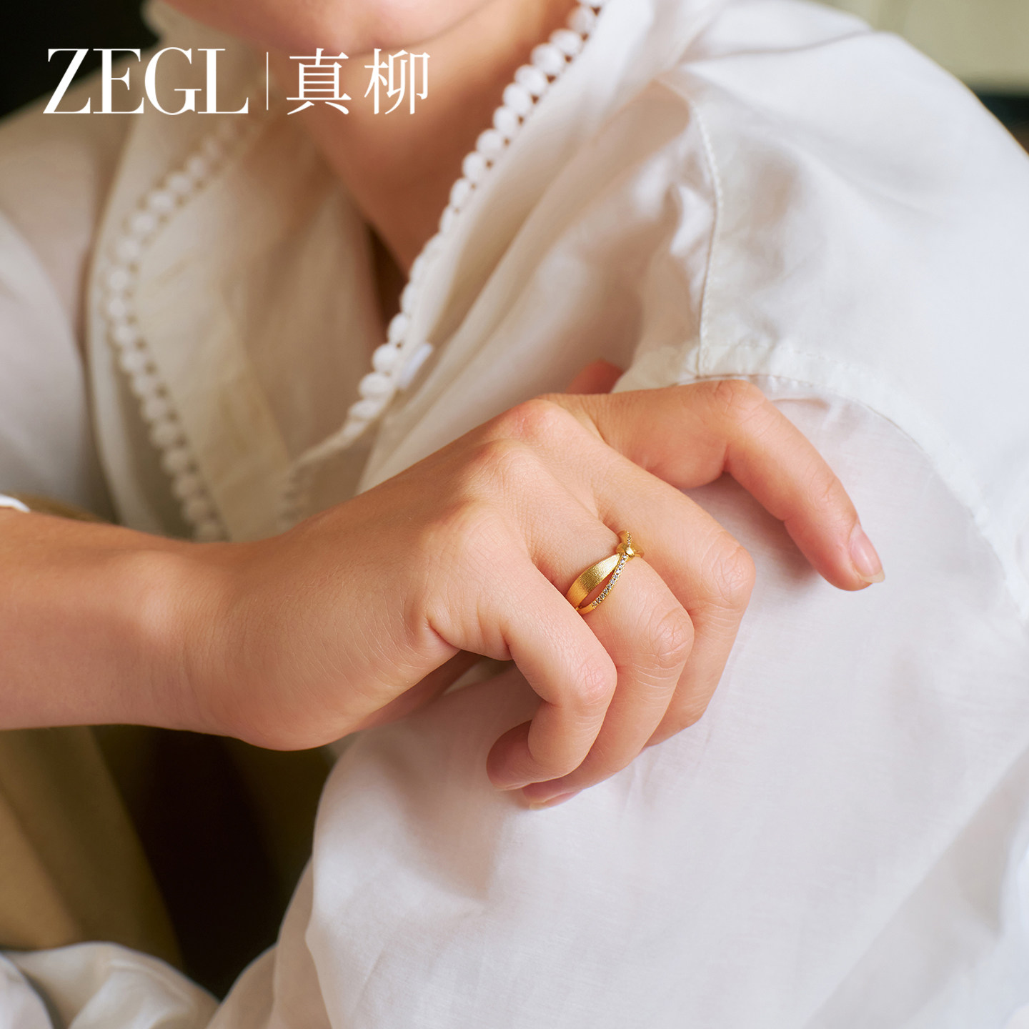 ZEGL设计师金色拉丝蝴蝶结戒指女小众设计轻奢指环精致春夏食指戒
