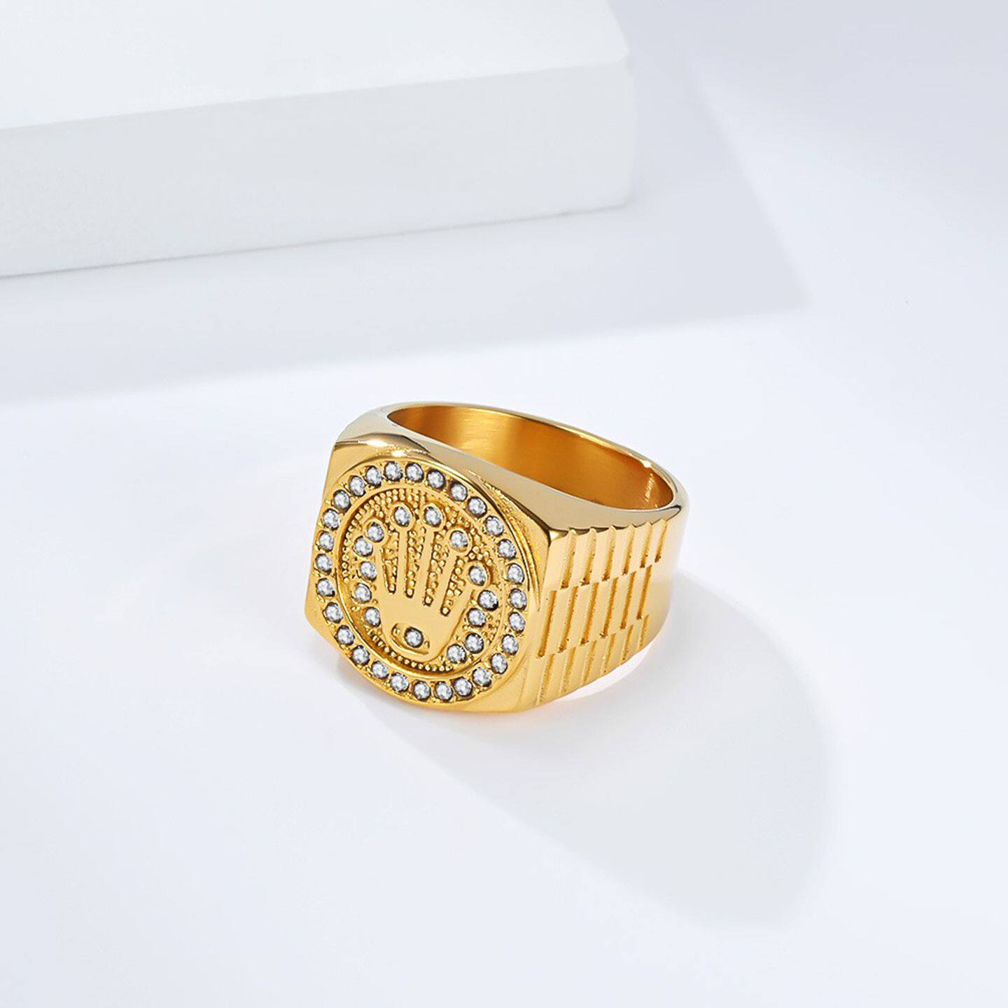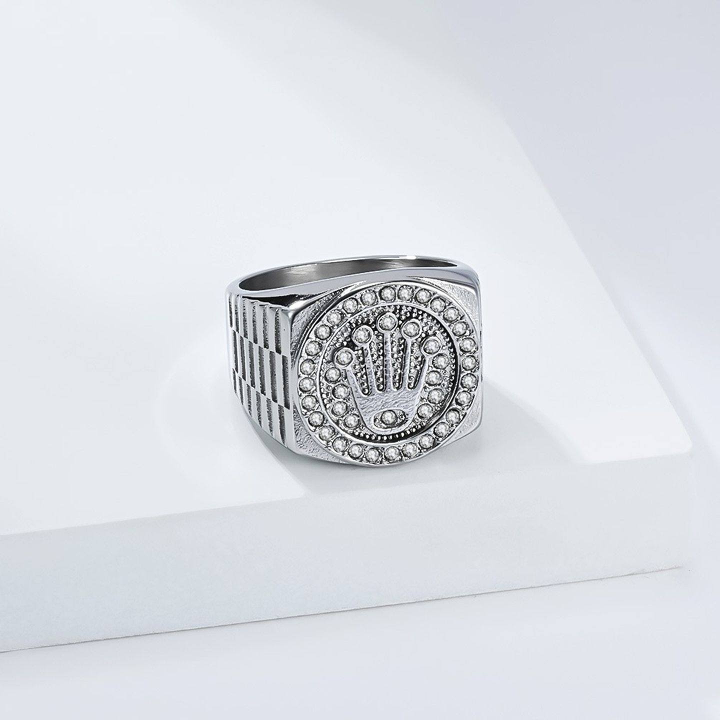嘻哈hiphop皇冠钛钢戒指男士时尚欧美小众个性潮酷满钻霸气扳指环