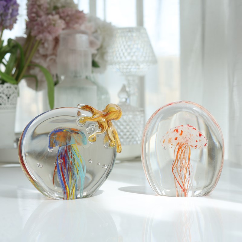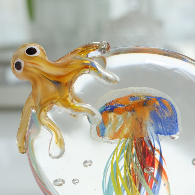 意器 琉璃摆件水j母章鱼客厅样板间桌面玄关装饰送礼摆设软装孤品