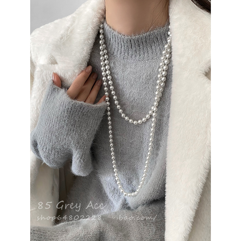 极简风_施家珍珠长款项链女气质高级感叠戴锁骨链简约百搭毛衣链