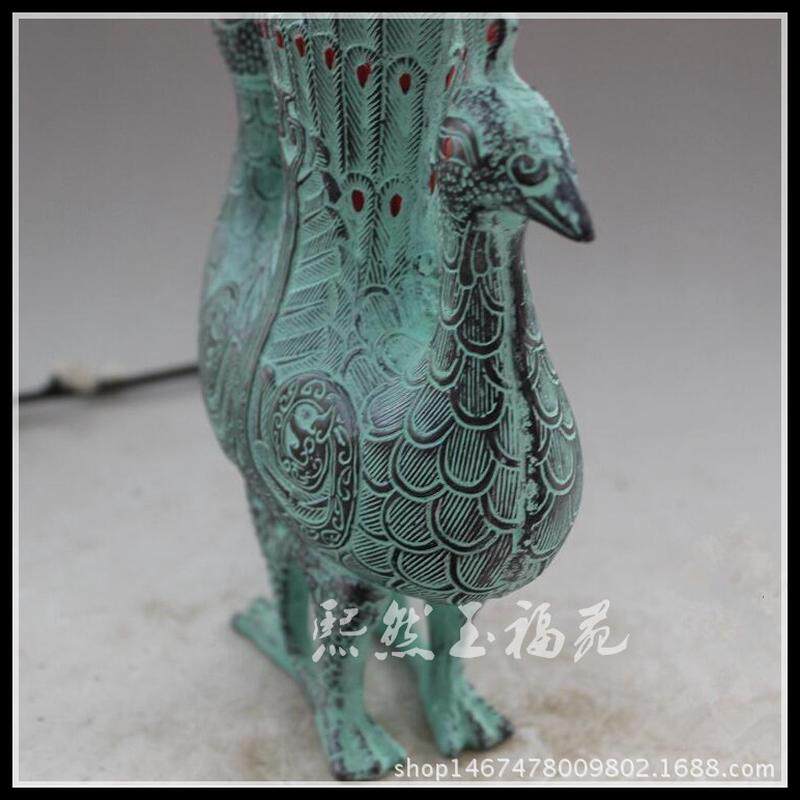 仿古青铜器双凤花瓶摆件古玩工艺品摆件青铜孔雀花瓶家居装饰收藏