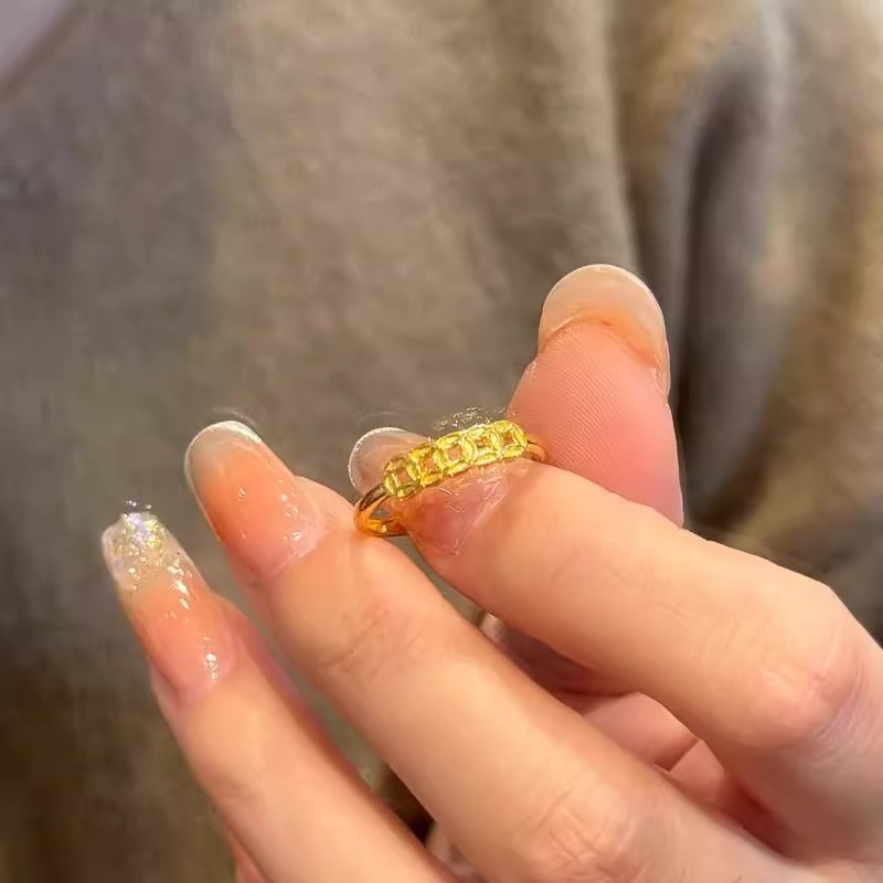 新中式金色五帝钱戒指女小众设计轻奢高级感本命年民族风食指环女