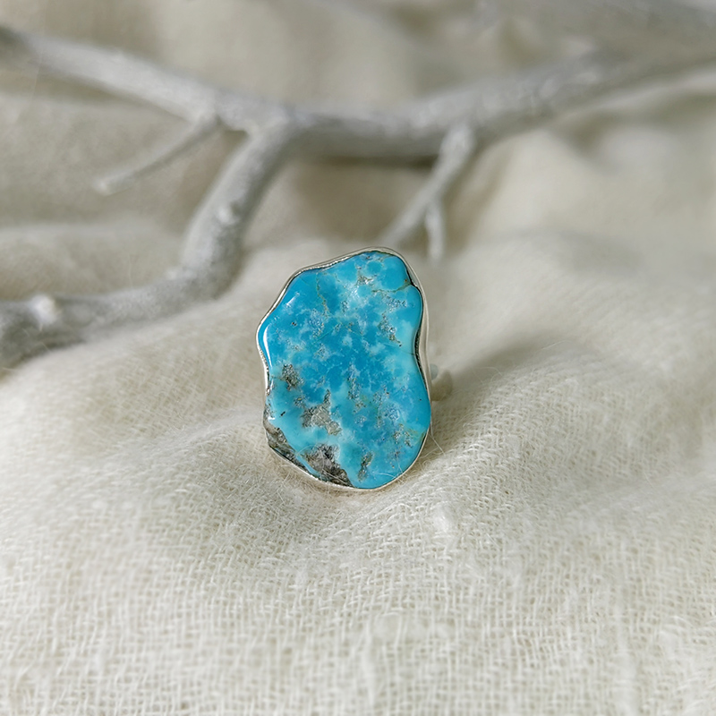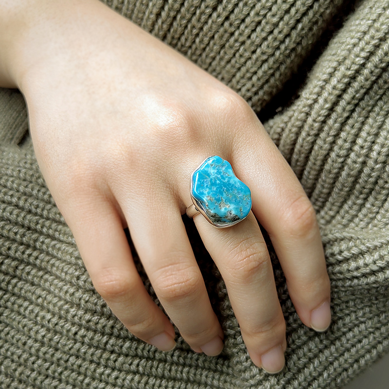 INS小众设计925纯银超美随型原矿蓝松石中指食指戒指个性独特女款