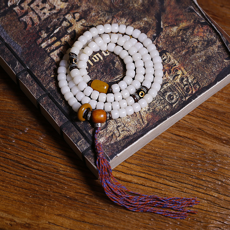 新品菩提子手串男女108颗项链白玉根原籽文玩蜜蜡民W族风天珠佛珠