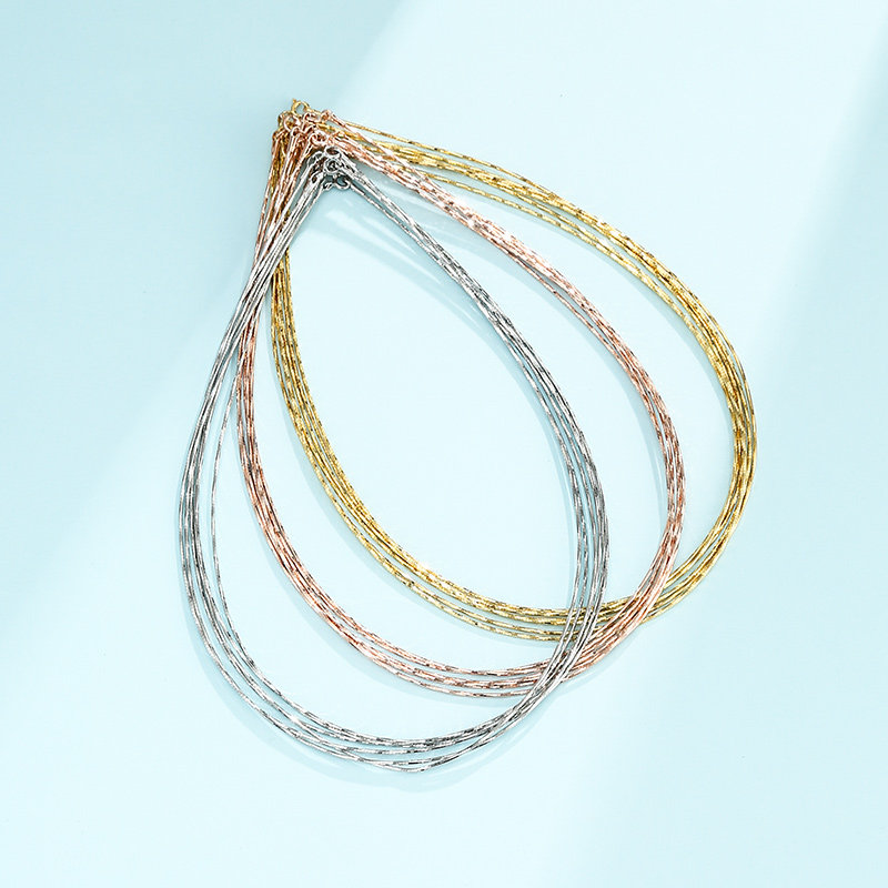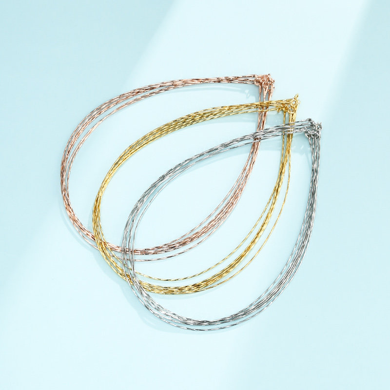 925纯银项圈 细丝蛇骨链锁骨链 18K金项圈路路通欧米全孔项坠项圈