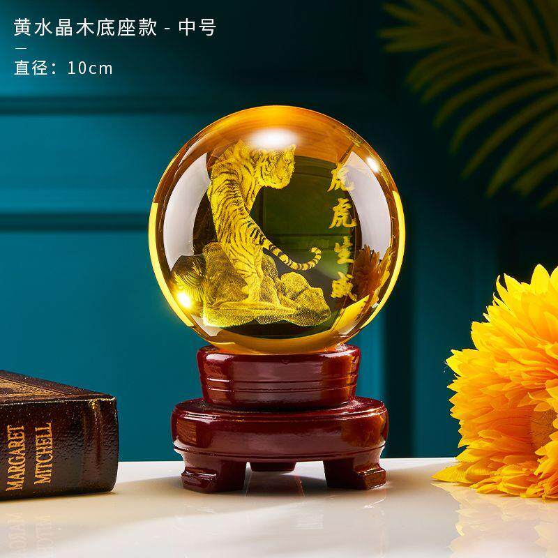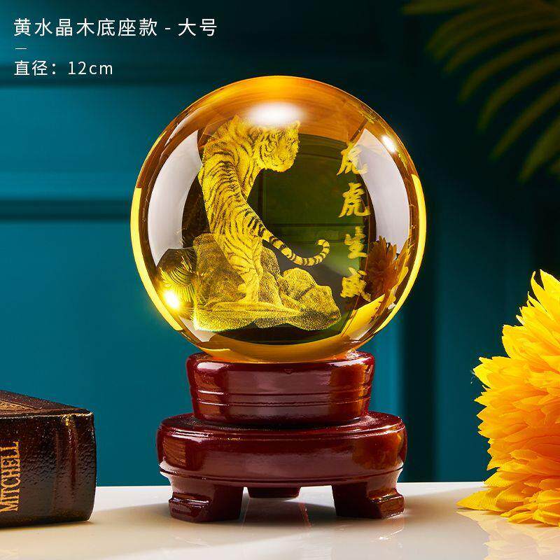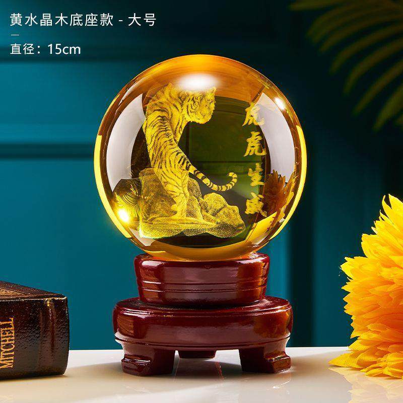 高档黄色水晶球气虎虎生威档轻奢大水球晶办公室摆件装饰高摆设工