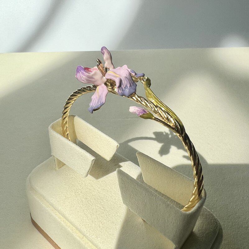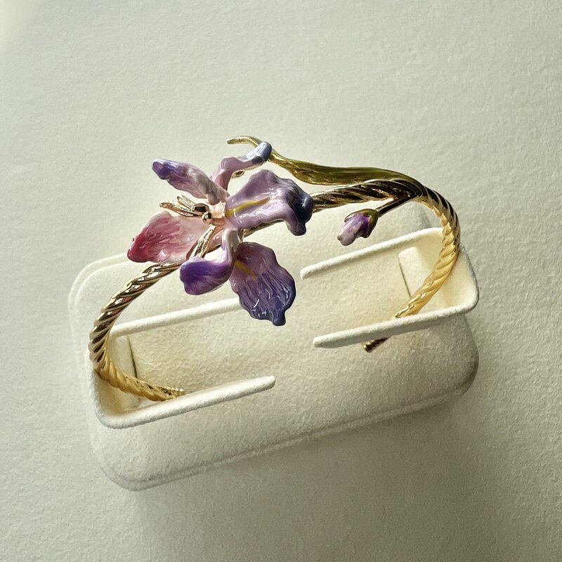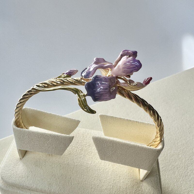 原创小众珐琅手绘鸢尾花开口手镯精美大气送女友新款粉紫色设计感