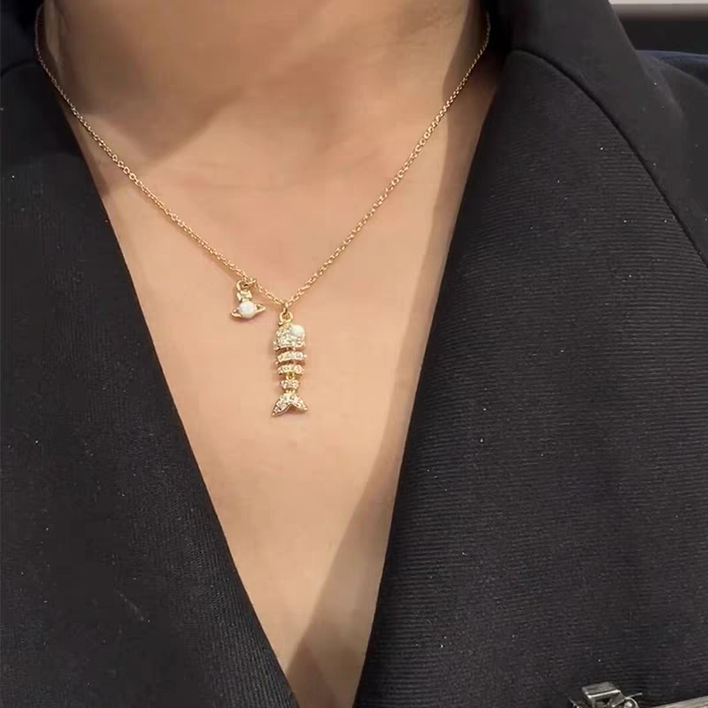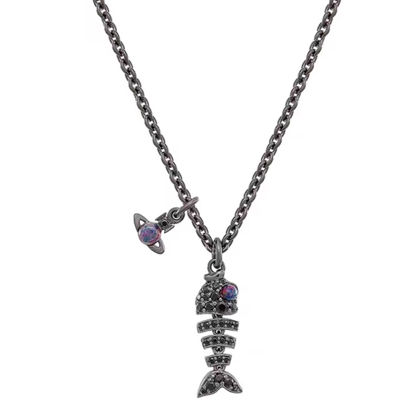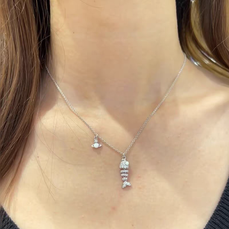 【官网正品】西太后土星项链满钻鱼骨双吊坠锁骨链手链明星款