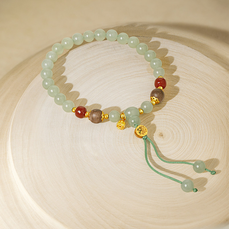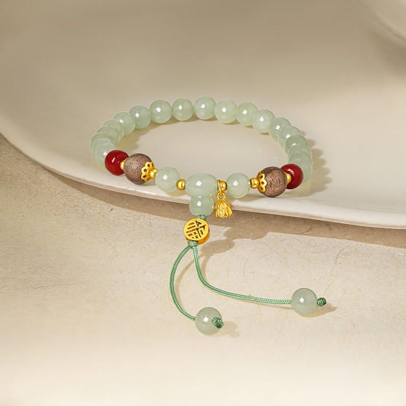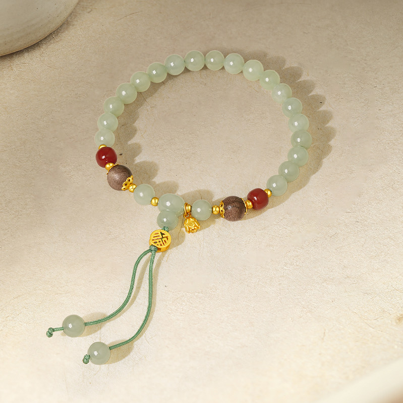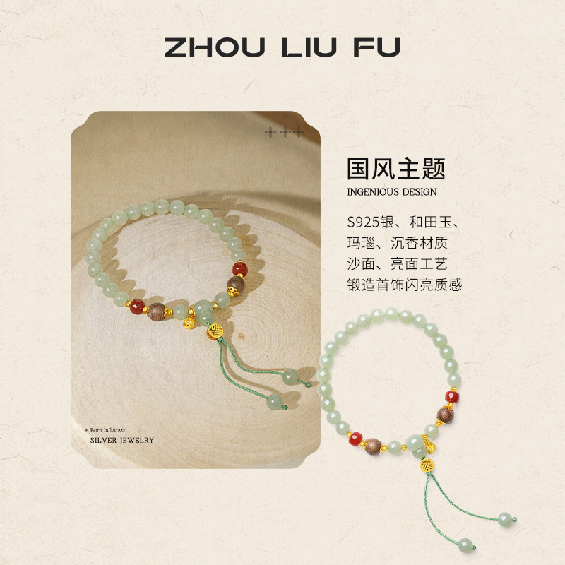 周六福和田青玉中国风手串S925银玛瑙手链手饰时尚圣诞礼物送女友