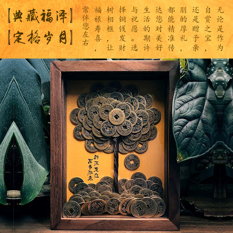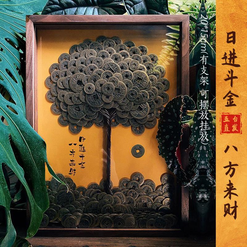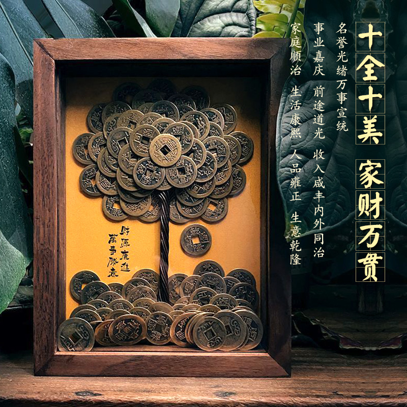 五台硬币发财树纯铜挂墙十帝钱日进摆件招财镇宅开业礼物八方来财