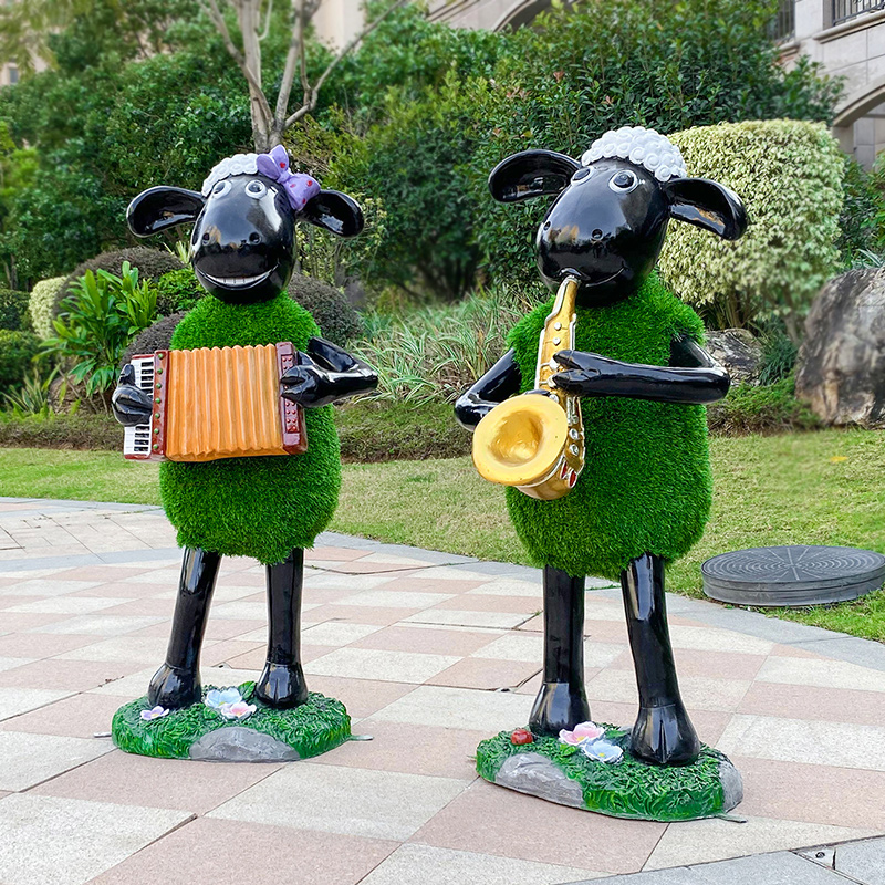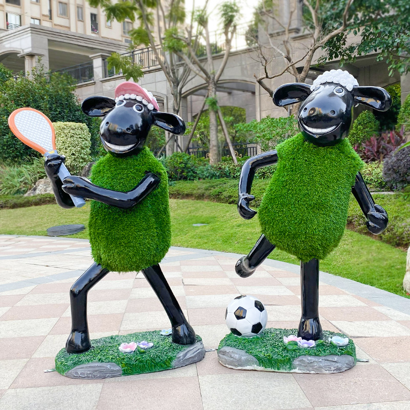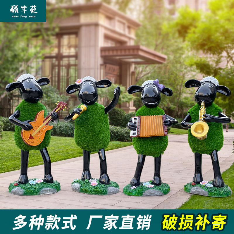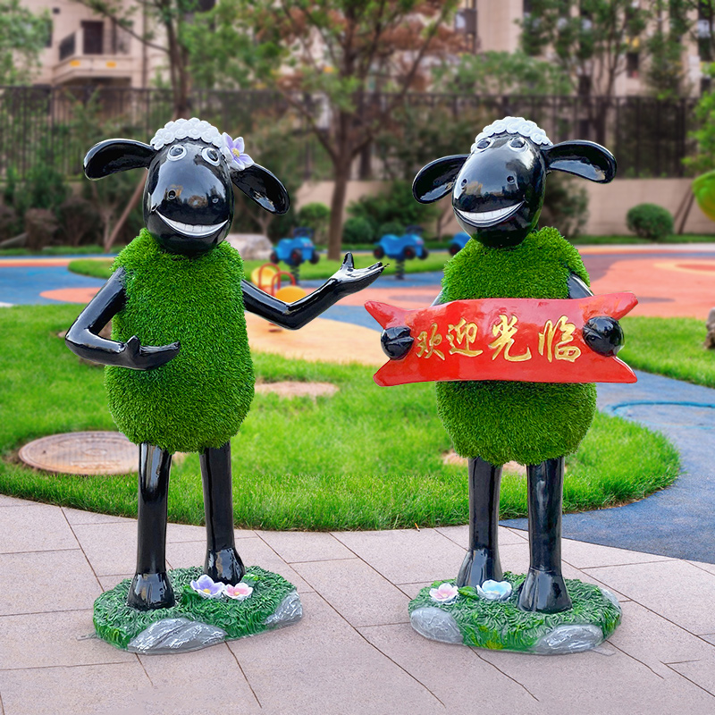 户外园林景观花园庭院草坪装饰动物摆件玻璃钢卡通植草羊雕塑小品