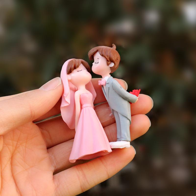 情侣小公仔新郎新娘亲嘴人偶模型摆件盲盒微景观桌面蛋糕装饰礼物